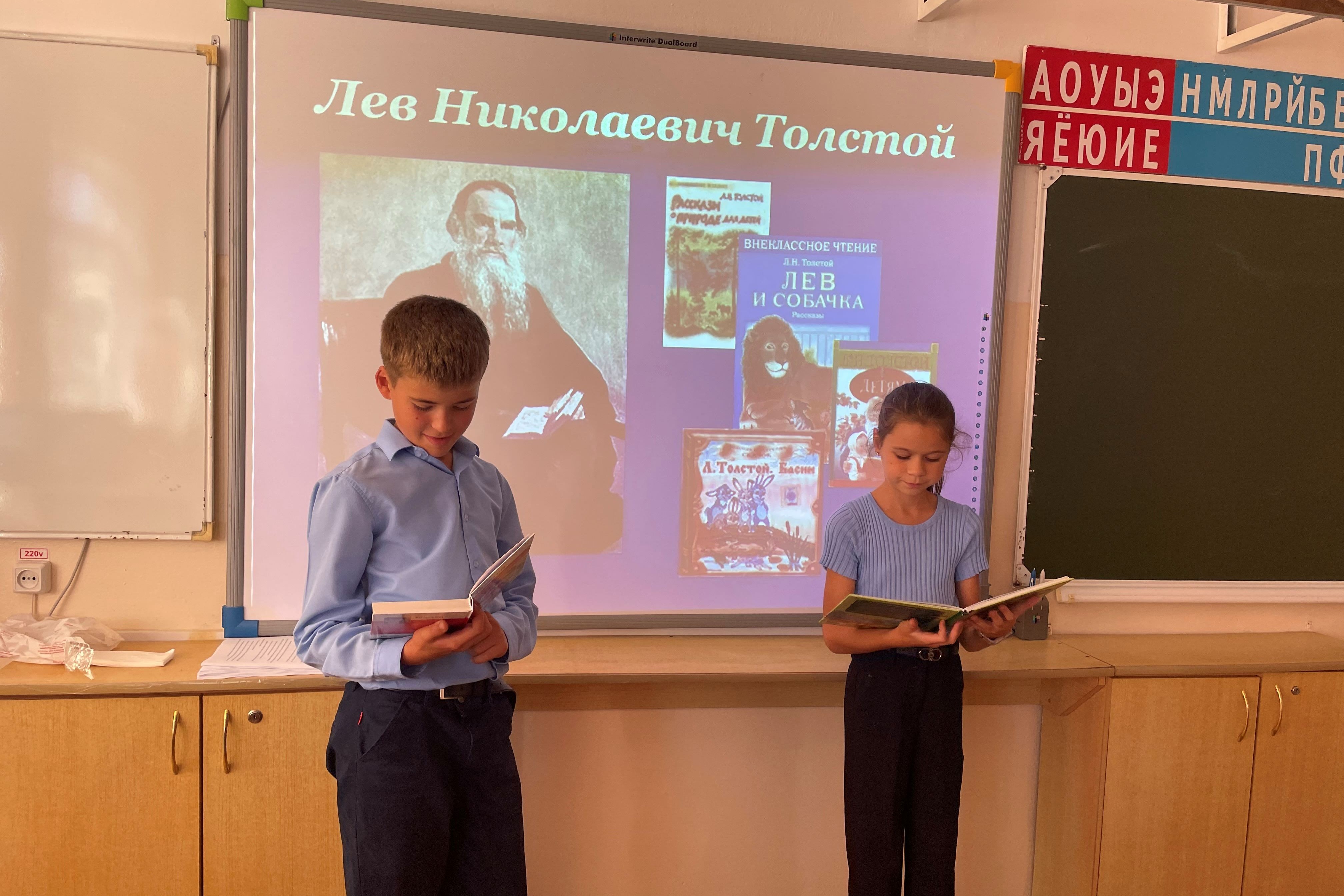 19 сентября сотрудники детской библиотеки №7 провели для четвероклассников (4В класс) школы № 74 урок литературного чтения «В гостях у Толстого». Ученики с интересом слушали рассказ о его жизни в таком красивом местечке под названием Ясная Поляна, о его многочисленной семье, о том, каким всесторонне развитым человеком он был. Детям рассказали, что рассказы, сказки, были и басни Льва Николаевича Толстого учат добру, любви, справедливости, уважению к взрослым. Дети вспомнили, какие произведения писателя они уже читали и какие хотели бы перечитать заново. Конечно же, назвали сказку про трех медведей, рассказы «Косточка», «Лгун», «Филиппок», «Косточка», «Котенок» и многие другие. Эти произведения дети по очереди читали и обсуждали.
