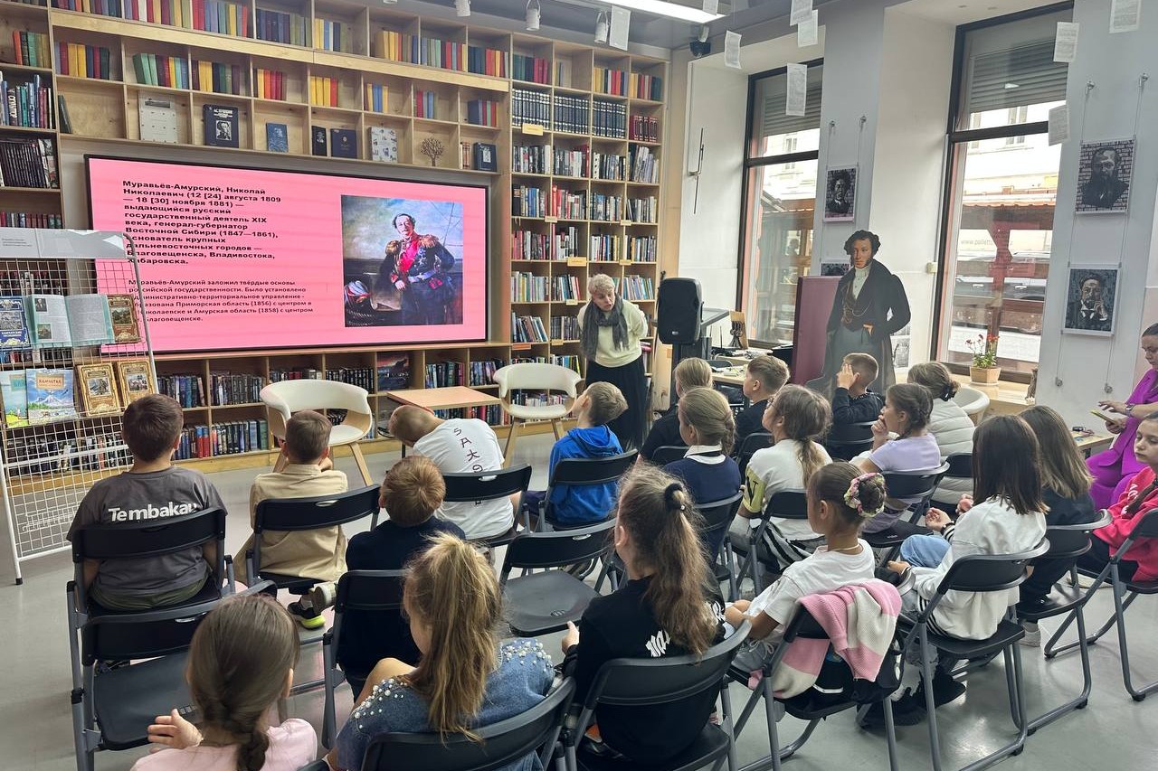 19 сентября для учеников 4 «Б» класса СОШ № 9 в библиотеке № 1 им. А.С. Пушкина состоялся увлекательный час краеведения, посвященный 215-летию со дня рождения Н.Н. Муравьева-Амурского. Мероприятие позволило ребятам узнать о важных моментах в истории нашего региона, а также познакомиться с личностью выдающегося государственного деятеля Николая Николаевича Муравьёва-Амурского.
