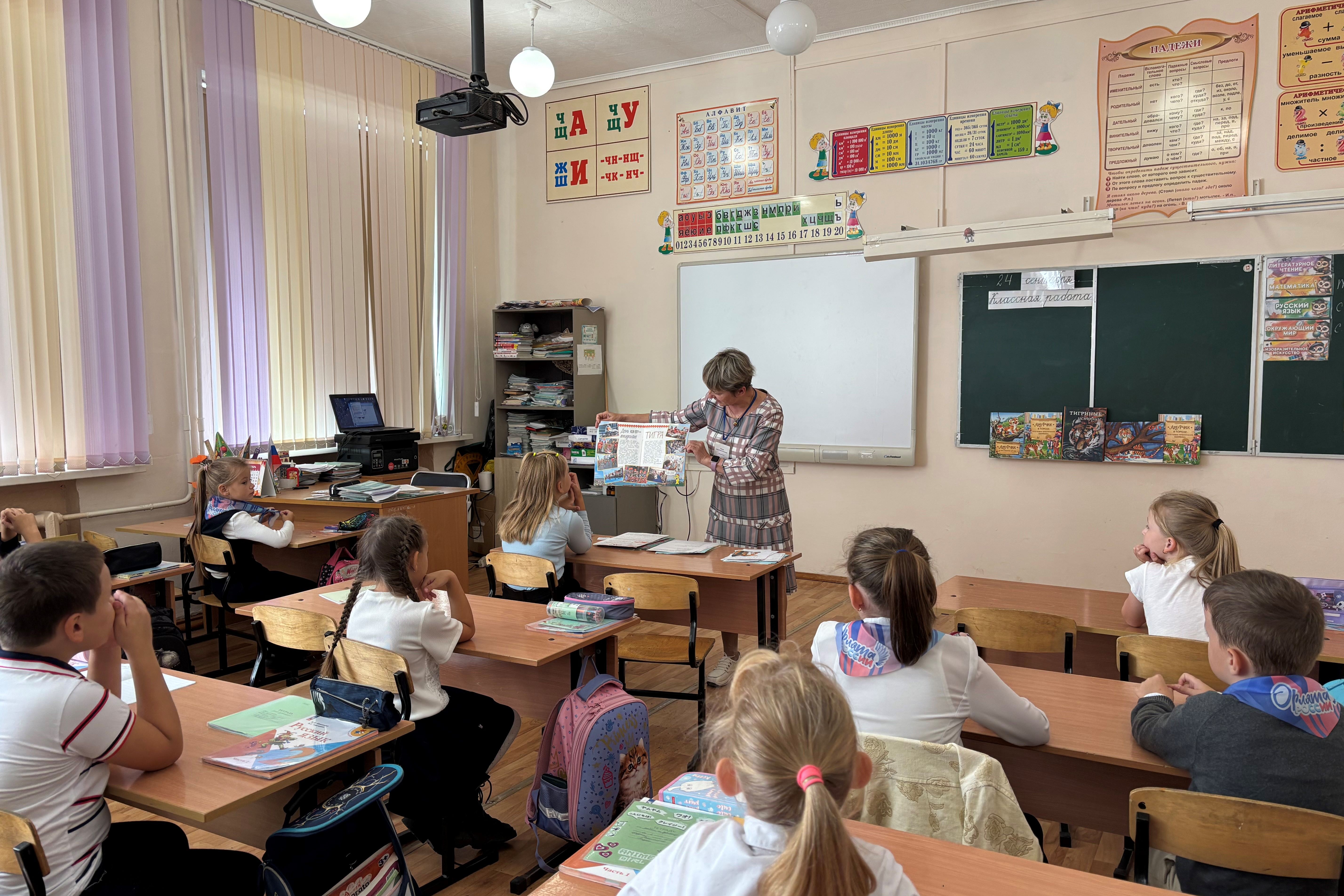 Много говорили об амурском тигре – символе Владивостока и всего Приморского края. Дети узнали о том, что инициатором праздника был известный писатель-охотовед Владимир Тройнин и отмечается он в последние выходные сентября, познакомились с его книгой «День тигра», послушали его рассказы о самых больших диких кошках на Земле, о том, где они живут, об опасностях, которые их подстерегают, о том, чем питается тигр.