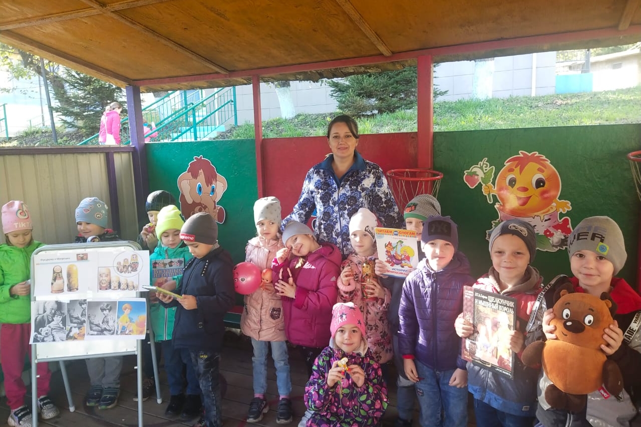 Игрушки — свидетели и очевидцы истории страны, это воспитатели и учителя. Это наше детство и память, в конце концов. Дошколята узнали, что игрушки бывают игровыми, сувенирными и обрядовыми. Дети тут же подержали в руках японскую кошечку с поднятой лапкой, яркую Семёновскую матрёшку, куклу–мотанку из ниток, Филимоновскую свистульку и добродушного плюшевого Винни-Пуха.