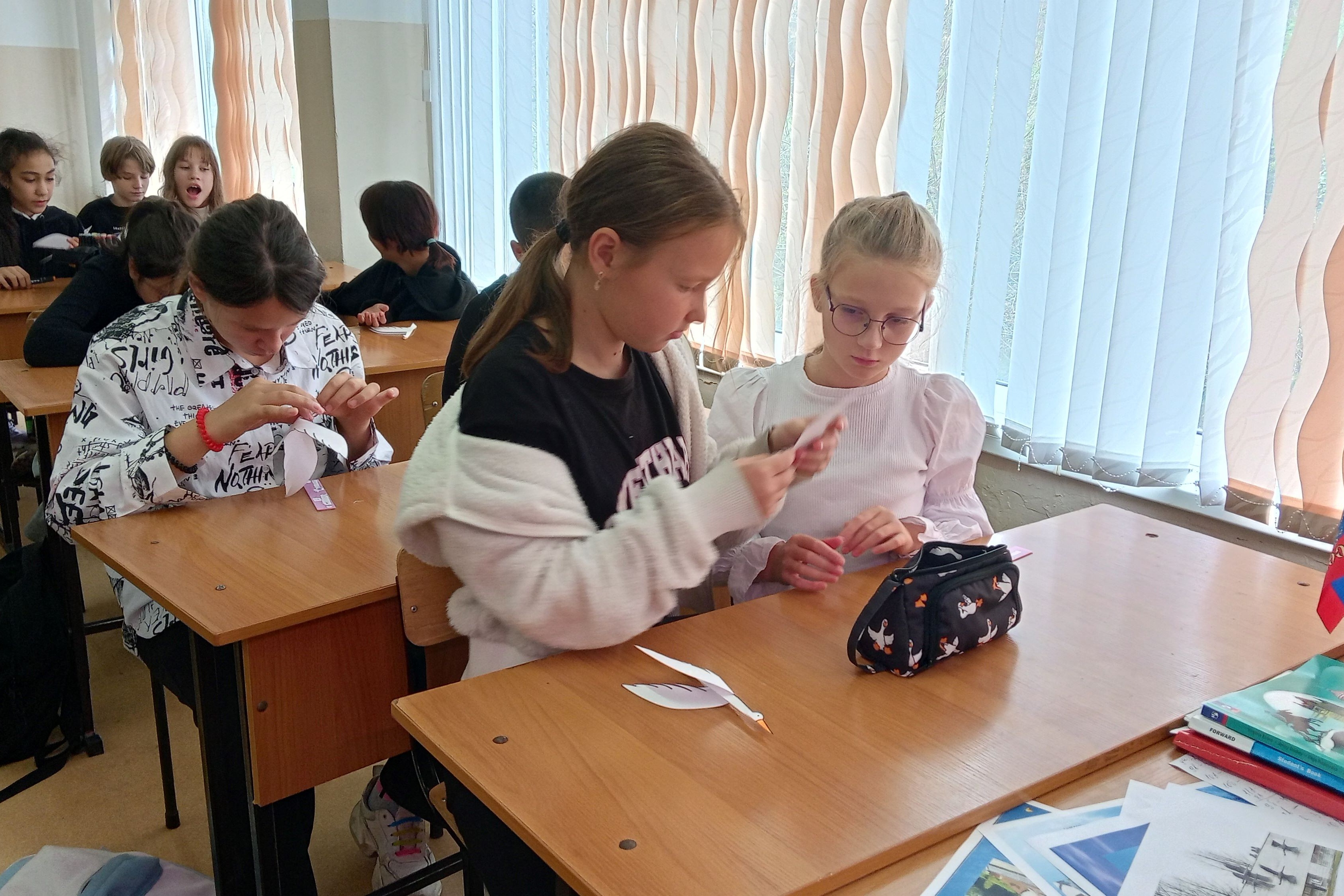 Для учащихся школы № 58 библиотекарем библиотеки № 20 проведена патриотическая акция «День белых журавлей. Ребята услышали трагическую историю японской девочки Садака Сасаки, ставшей одной из жертв атомного взрыва в Хиросиме, которая умерла от лучевой болезни, не успев сделать 1000 бумажных журавликов, познакомились с историей песни Яна Френкеля «Журавли» на стихи Расула Гамзатова. Эта стала песней-молитвой, гимном памяти, погибшим во время Великой Отечественной войны солдатам, которых автор сравнивал с клином летящих журавлей, узнали о монументальных композициях, в которых используется образ белого журавля. На изготовленных бумажных журавликах ребята написали пожелания мира, добра, тепла своим близким.