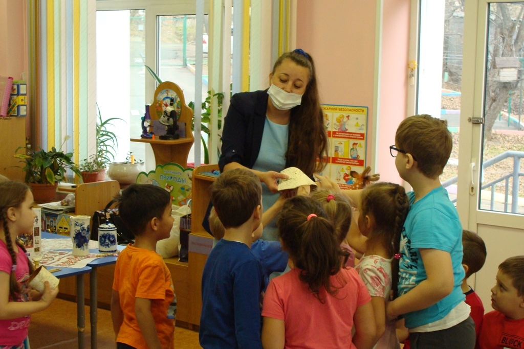 Воспитанники трех групп детского сада № 176 стали участниками мероприятия, организованного в формате детской завалинки по теме «Синие цветы Гжели». Сотрудники библиотеки № 4 рассказали ребятам о русских народных промыслах, порассуждали: почему на Руси так важно было владеть каким-либо ремеслом?