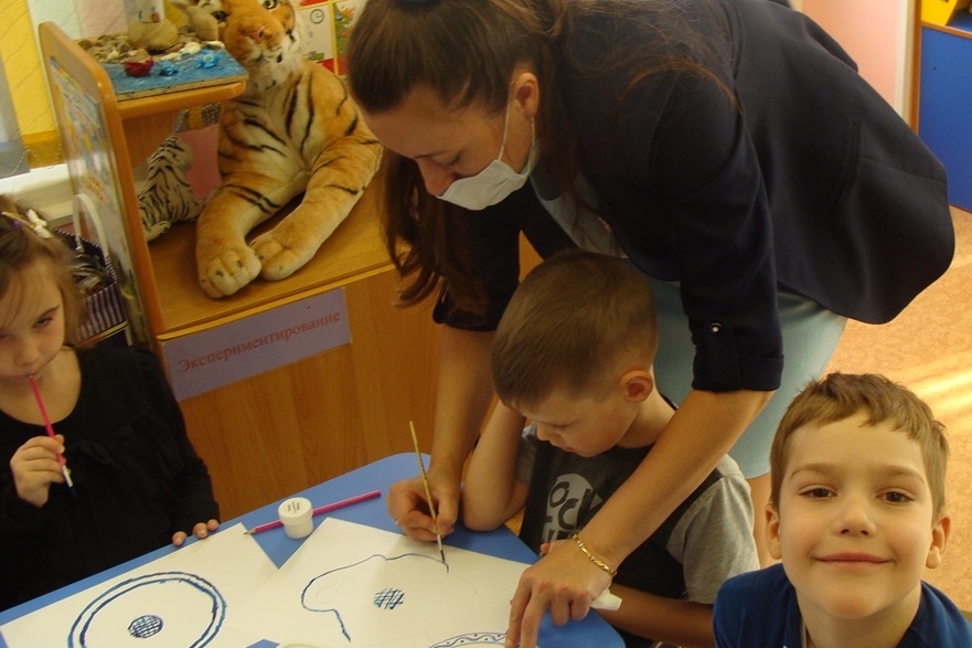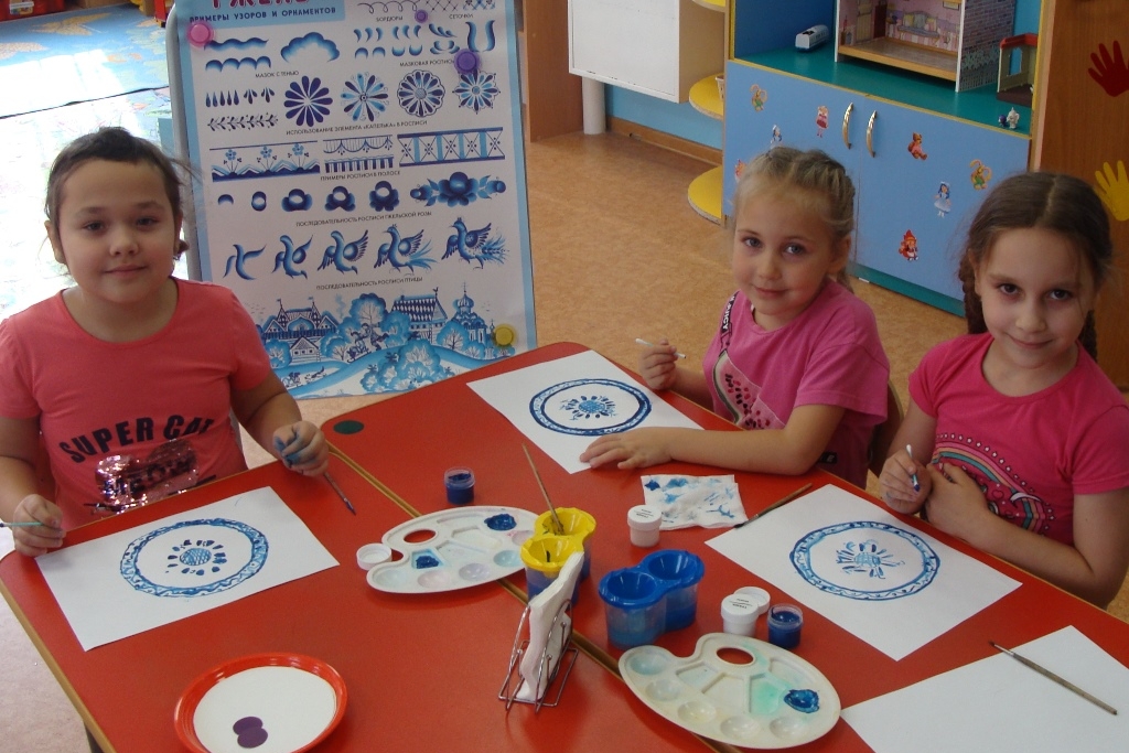В перерывах между работой дошкольники отгадывали иллюстрированные стихотворные загадки об игрушках, которые, между прочим, были расписаны в стиле изделий Гжели.