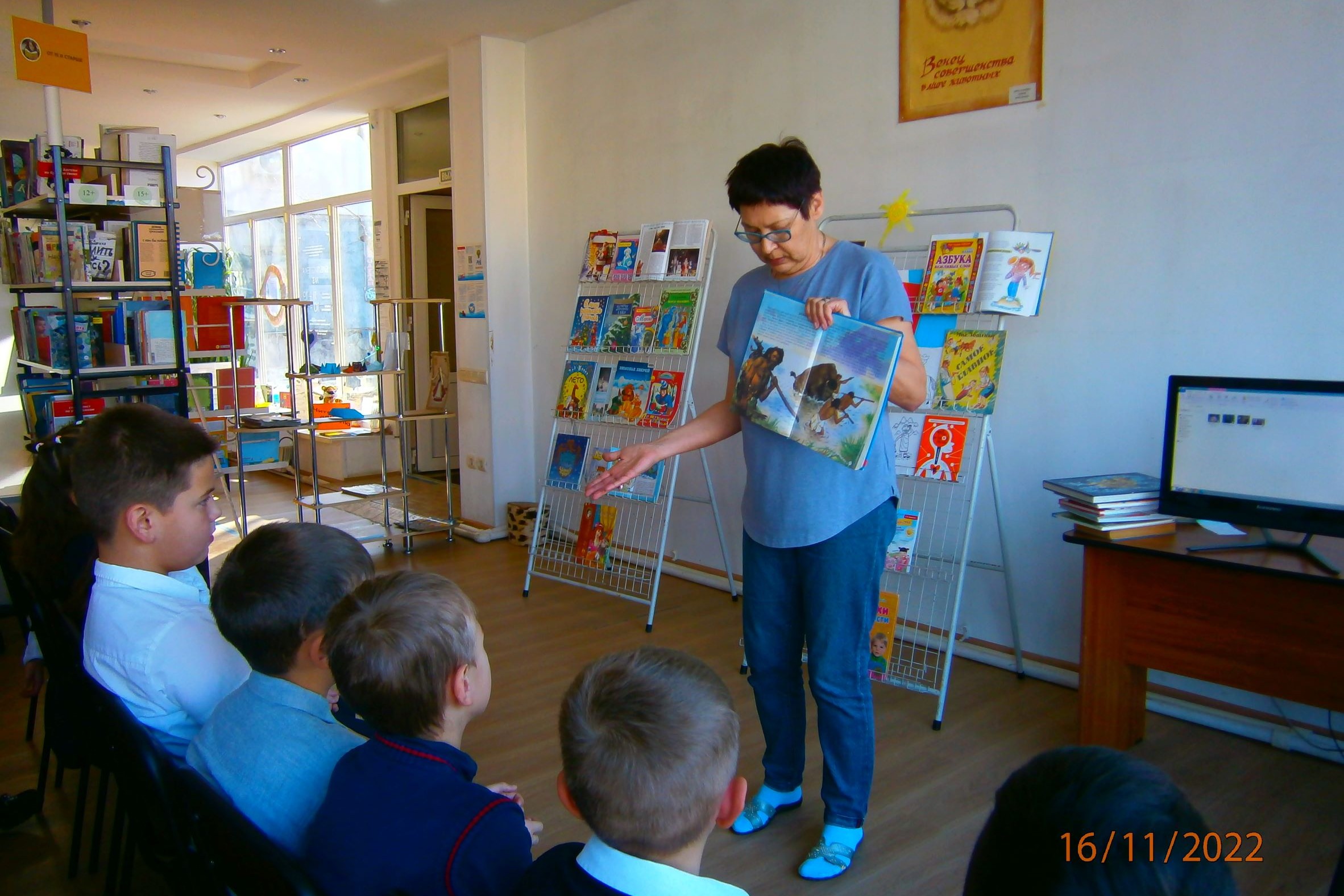 Эта встреча детей в библиотеке — прекрасный повод для упражнений в дружеских приветствиях, радостных эмоций и хорошего настроения.