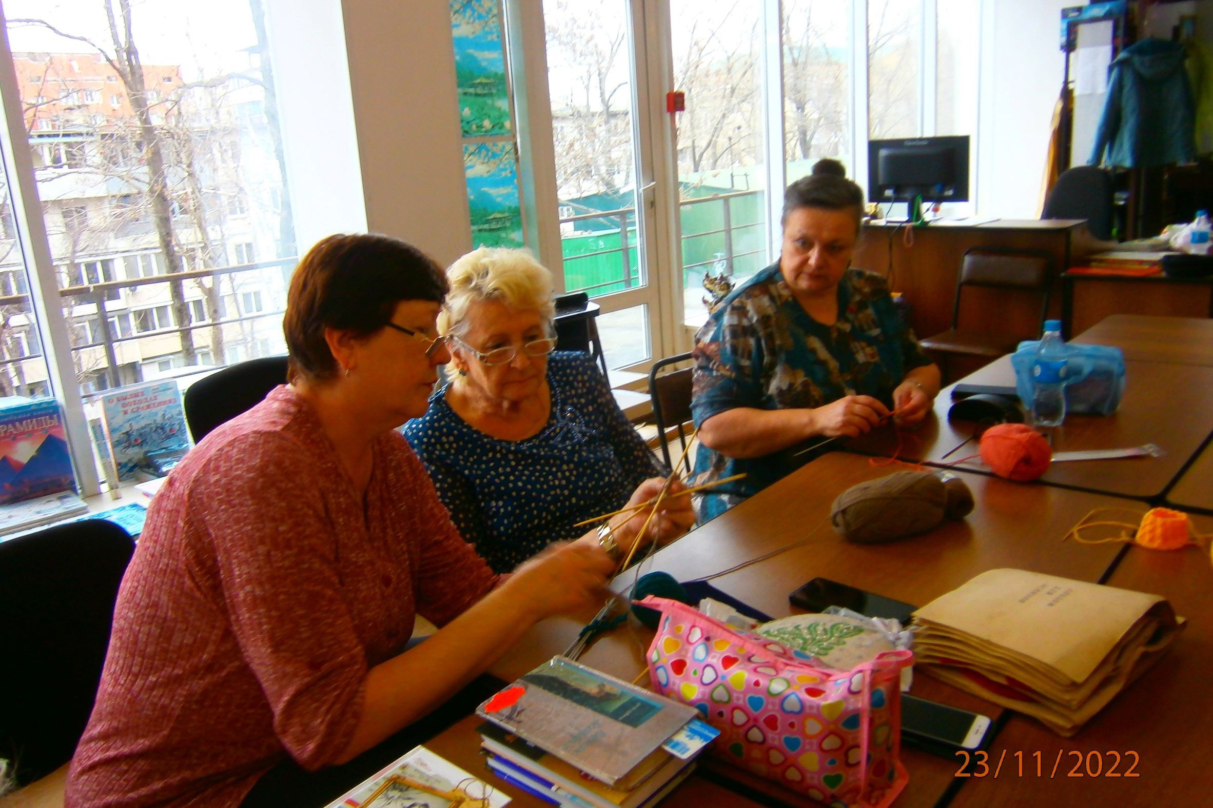 23 ноября в библиотеке № 3 рукодельницы, посещающие творческую мастерскую «Руками вышитое чудо», приняли решение подключиться к Приморской акции по вязанию носков для воинов СВО. На занятии осваивали вязание спицами, подбирали подходящую пряжу. Носки должны быть теплыми и яркими. Подарки, связанные с любовью и заботой, должны порадовать защитников Отечества.