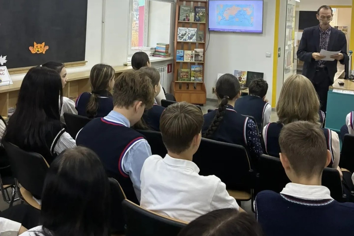 В детской библиотеке № 5 (ул. Леонова, 21) в рамках проекта Библиотечной системы Владивостока «Объяснения» проведена 20 ноября лекция для восьмиклассников СОШ № 6 «Иван Федорович Крузенштерн и первое кругосветное плаванье». Лекцию провел автор проекта, историк-краевед Сергей Львович Корнилов.
