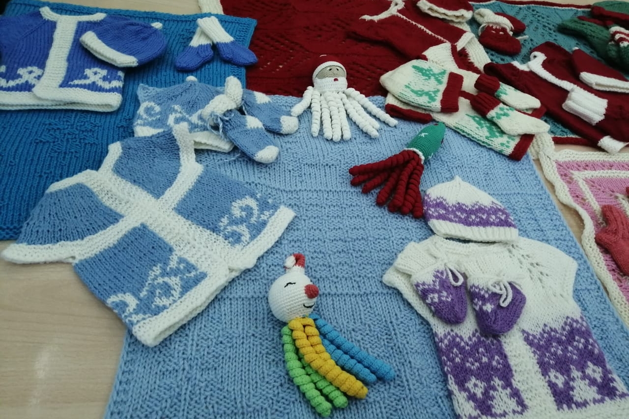 Напомним, Клуб «28 петель» – это международный социально-благотворительный проект. Волонтеры клуба вяжут носочки, шапочки, кофточки и одеяльца для недоношенных детей, родившихся намного раньше срока с массой от 500 г до 2 кг. Для чего нужны шерстяные вещи? С первых секунд, после преждевременного рождения ребенка с экстремально низкой массой тела, необходимо заботиться о сохранении тепла его тела. Потеря тепла приводит к тому, что организм вынужден тратить энергию не на рост и развитие, а на согревание тела. Чтобы этого избежать, необходимо поддерживать тепло организма, с этой целью и применяют шерстяные вещи.