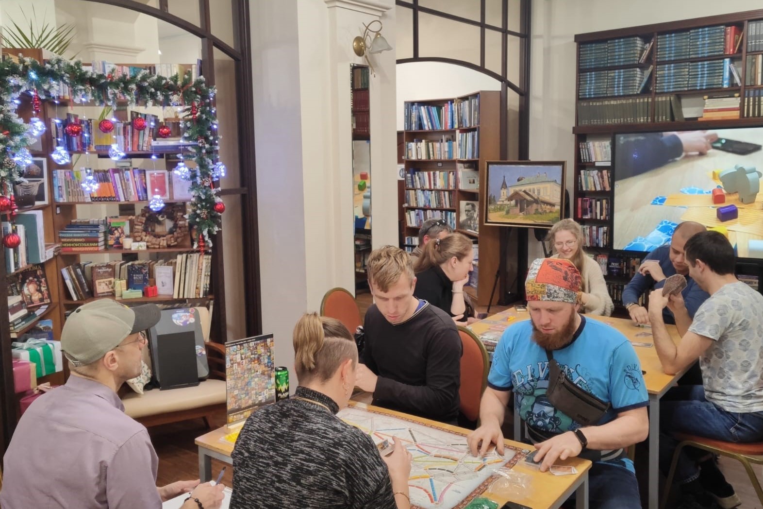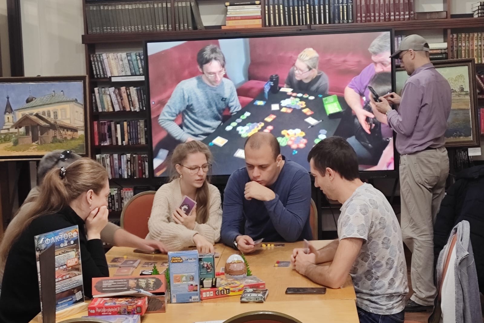 Гости встречи посмотрели на мультимедийной презентации видеоклип игроклуба с яркими моментами лучших игр прошлого года и обсудили новинки 2025 года. За игровым столом вспомнили полюбившиеся турнирные игры за 2024 год. Руководитель клуба Андрей Медведев помог вспомнить игрокам правила игр, чтобы каждый желающий смог выбрать и присоединиться к понравившейся игре.