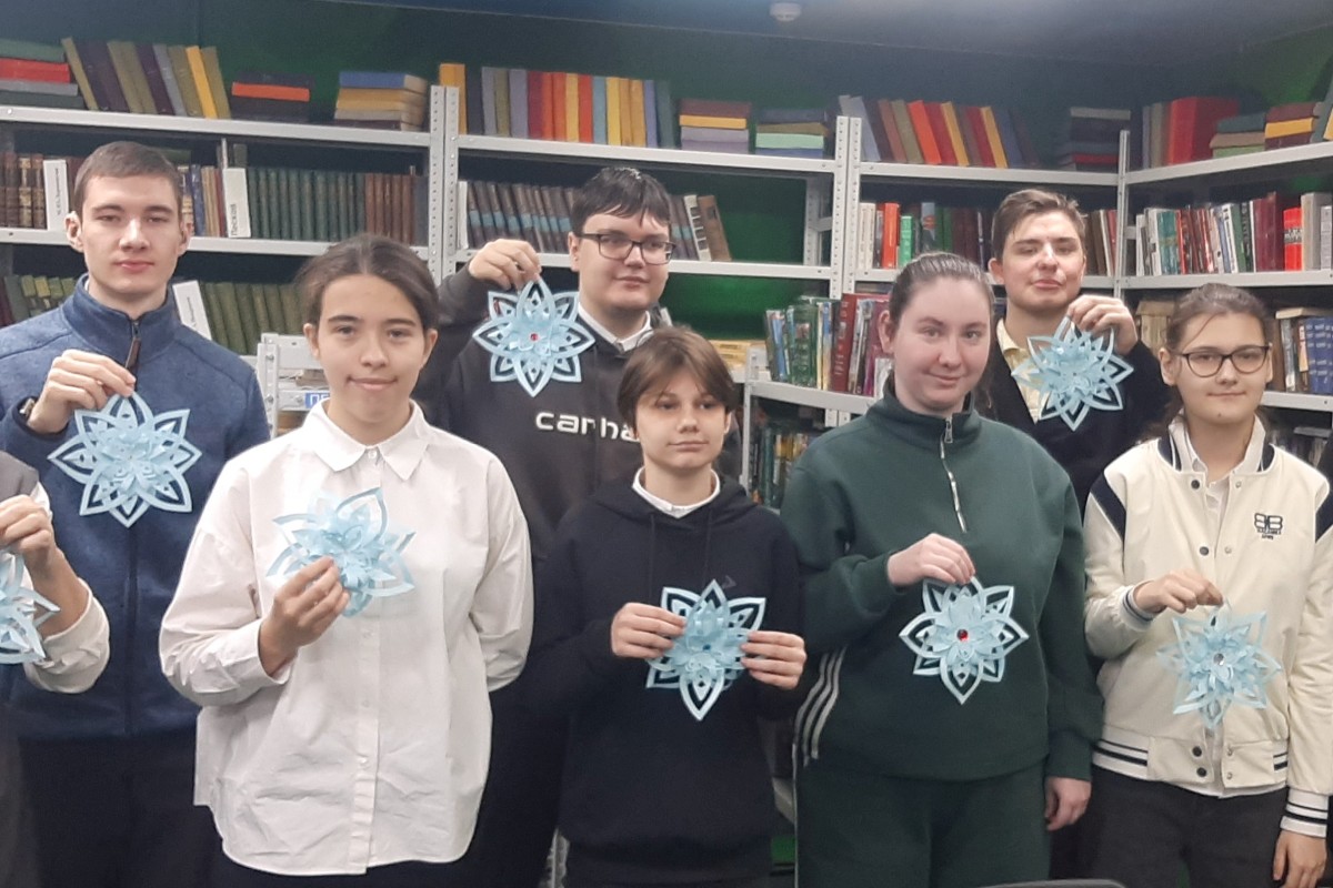 19 декабря в библиотеке № 17 (ул. Иртышская, 42) прошёл мастер-класс, который подарил ребятам возможность самим создать маленькое чудо из обычной бумаги. Мастер-классы организованы для старшеклассников коррекционной школы для слабослышащих детей, а также — для первых классов школы «Дарина». Ребята учились соединять отдельные элементы, придавая своей снежинке объем и завершённый вид. Красивые и интересные объёмные снежинки были изготовлены детьми с помощью листов бумаги, клея-карандаша и ножниц. Все присутствующие на мастер-классе смогли зарядиться новогодним настроением и весело провести время.