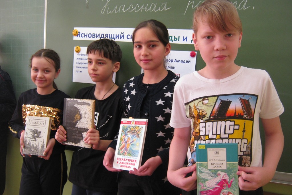 Библиотека №15 организовала литературный час для учащихся 4 «Б» класса школы № 54. Рассказ об Э.Т.А. Гофмане вызвал у ребят интерес. Дети познакомились с главными героями сказки «Щелкунчик и Мышиный король», узнали, что под пером писателя обыденная жизнь становится источником всего фантастического.