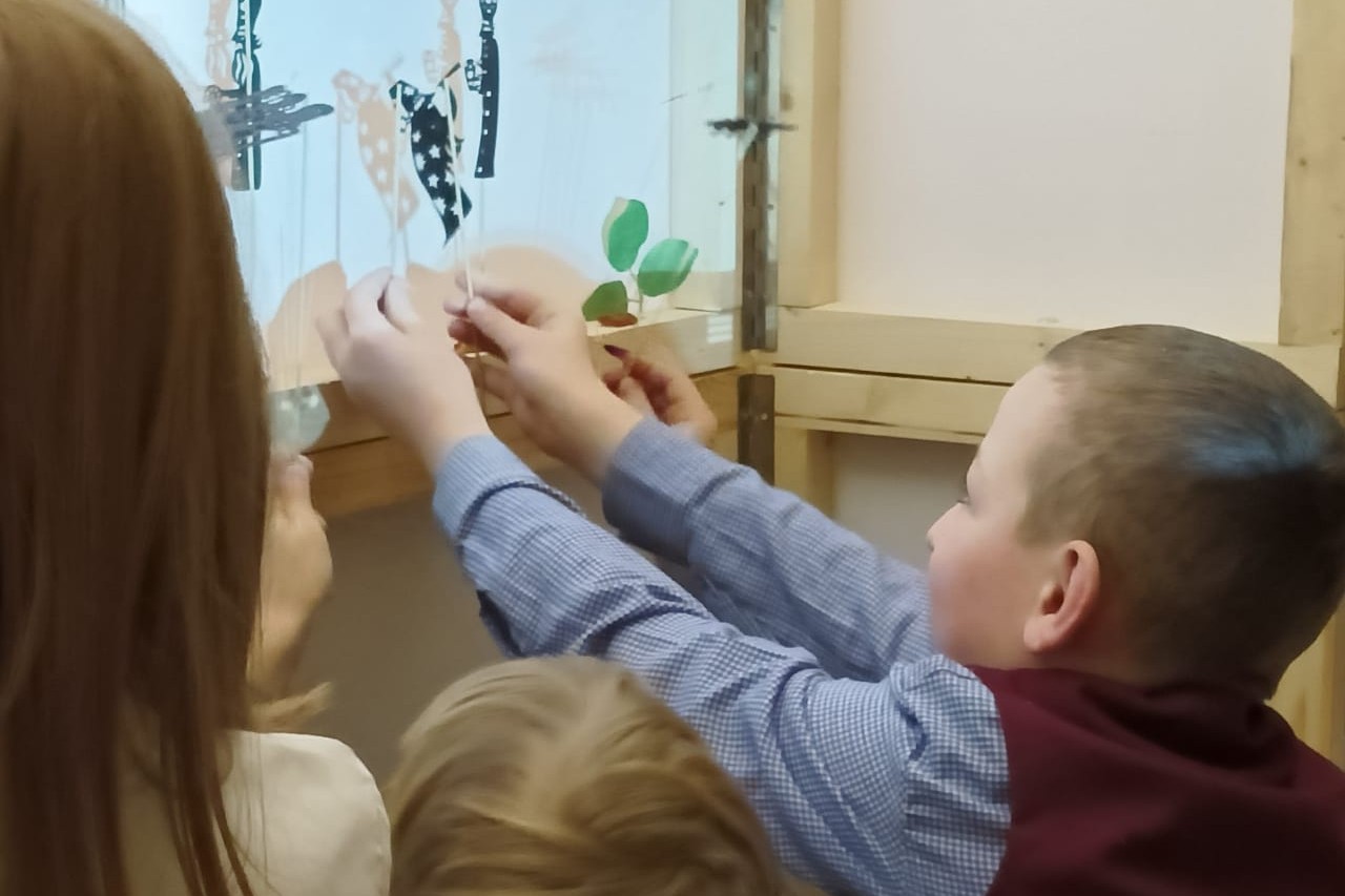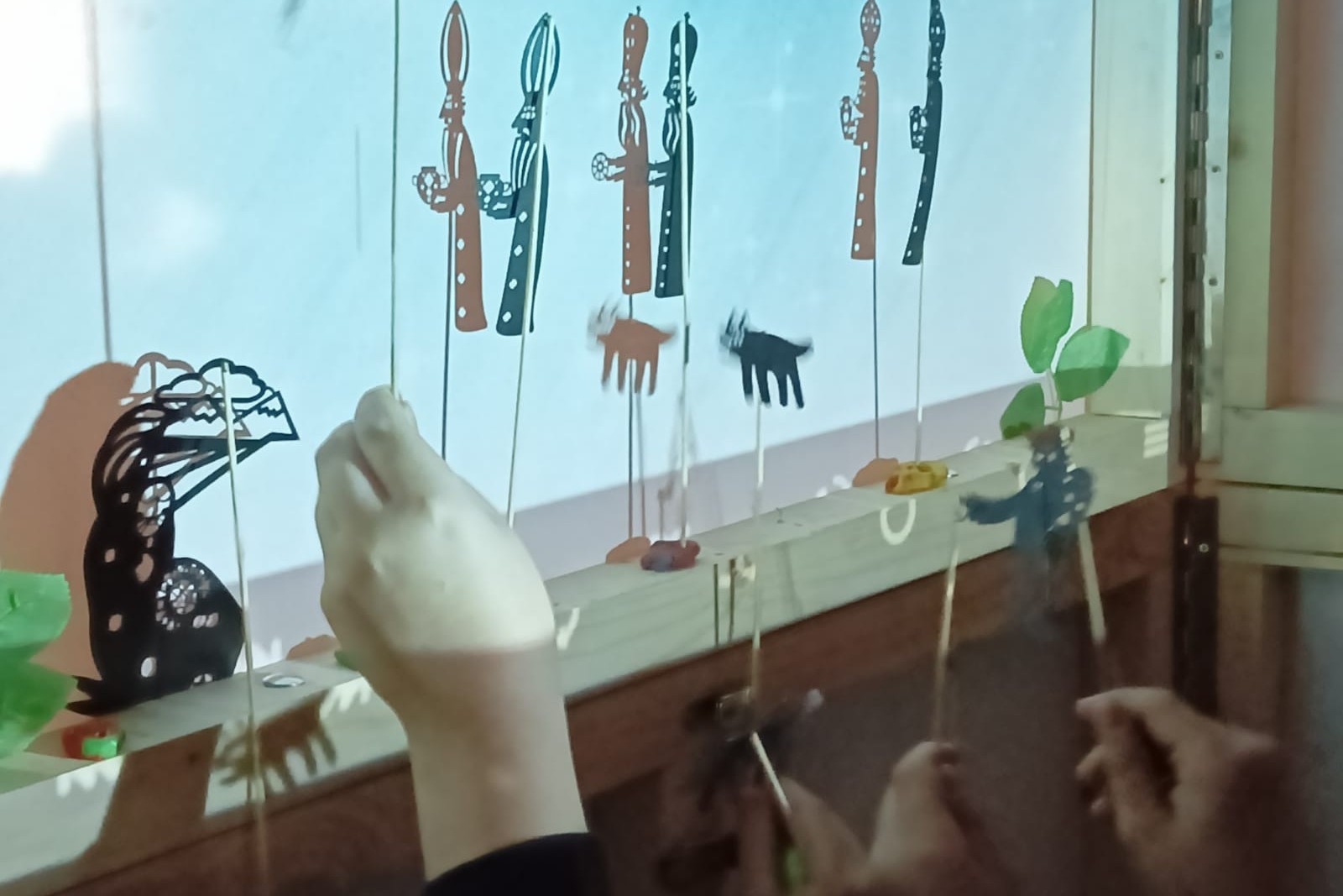 Ребята смотрели представление на одном дыхании, а после попробовали себя в роли актёров. За ширмой театра теней школьники попробовали одновременно управлять фигурками и читать текст. Немало усилий надо приложить, чтобы игра была слаженной и понятной зрителю. Браво мастеру.