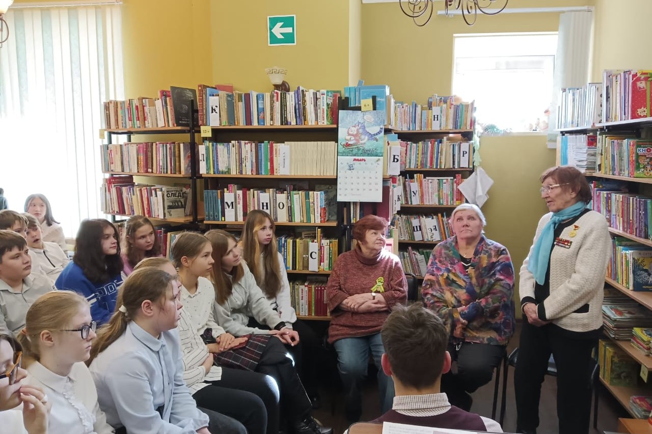 Почетными гостями библиотеки были Крамскова Людмила Федоровна, член Городской общественной организации «Жители блокадного Ленинграда» и Негода Лидия Ивановна, участник ВОВ. Они поделились воспоминаниями, рассказали о детском вкладе в освобождение Ленинграда, как учились в осажденном городе, ответили на вопросы, а дети прочитали стихи О. Берггольц, О. Аникеевой, Ю. Воронова.