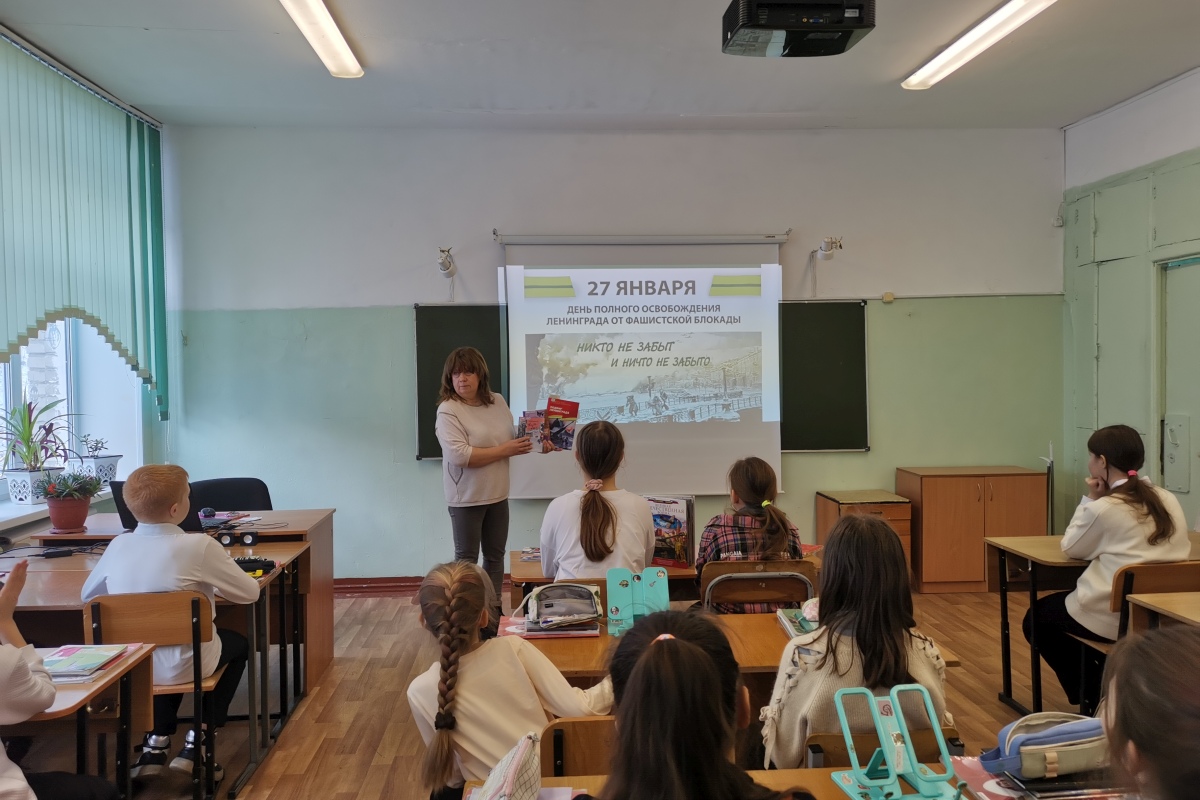 Об истории этого дня, о том, что пришлось пережить ленинградцам, узнали четвероклассники СОШ № 43 во время часа мужества «Беспримерный подвиг и великая победа» в библиотеке № 16. Не оставили ребят равнодушными сохранившиеся страницы дневника маленькой Тани Савичевой: об этом в книге Ильи Миксона «Жила, была». Спасением для осажденных стала «Дорога жизни» – проложенная по льду Ладожского озера. В самые тяжелые времена она была единственной надеждой на спасение для жителей блокадного Ленинграда. От нее зависели жизнь, смерть и победа над врагом. Книга Юлии Ивановой «Дорога жизни» — о подвиге людей, которые ее создали, о человеческой отваге и большой любви.