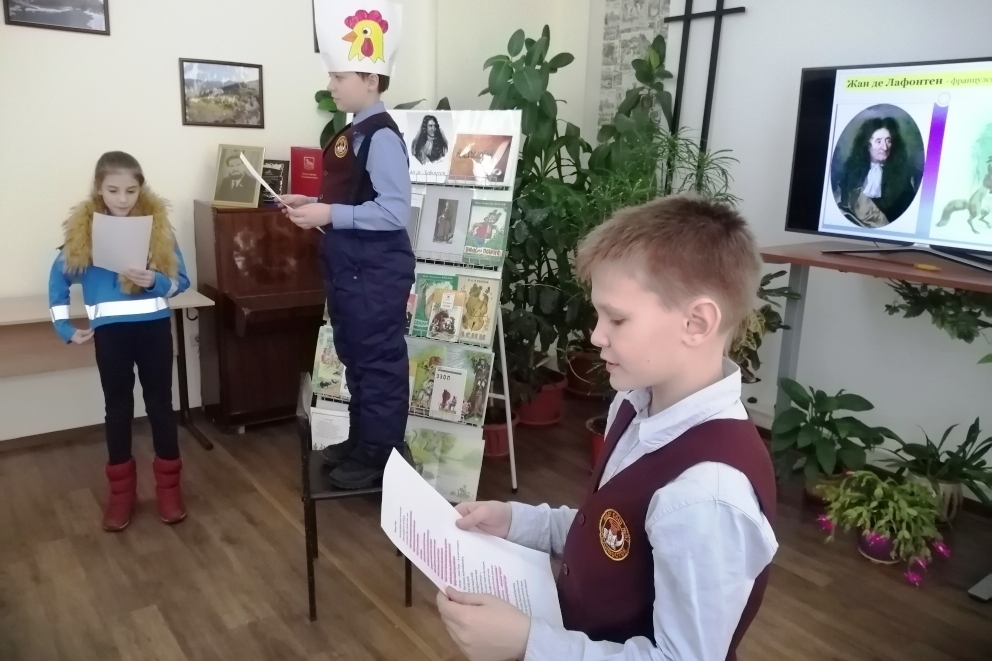В феврале в рамках программы школы талантливого читателя «Книжные старты» прошли часы литературы для учащихся 3 «А» класса МБОУ «СОШ № 57» и 4 «А» класса МБОУ «СОШ № 64», посвященные юбилею сборника «Сказки и рассказы в стихах» Ж. Лафонтена.