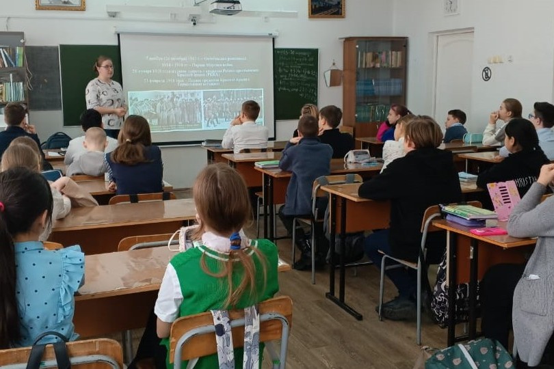 Вместе с учащимися вспоминаем боевые походы Гражданской войны, бои на озере Хасан, переломные события Великой Отечественной войны. Ребята с большим чувством читают стихи о связистах, санитарах, артиллеристах, военных почтальонах – всех тех, кто выполнял каждодневную трудную работу, не считая себя героем. Ребята хорошо знают военную символику, плакаты разных периодов войны. Они рассказывают о том, как традиции Красной Армии сохраняются в армии российской, которая сейчас хорошо оснащена техникой, новым оружием и боевым опытом предшествующих сражений. Наша Армия прошла долгий, трудный, победоносный путь с 1918 года до наших дней. И боевой лозунг «Наше дело правое – победа будет за нами!» — этот лозунг Великой Отечественной войны, как и приказ «Ни шагу назад, за нами Россия!», хорошая традиция современной российской Армии.