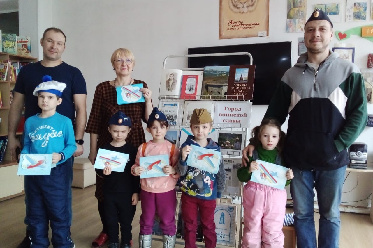 18 февраля в библиотеке № 3 состоялась беседа с элементами творчества для детей с родителями. Этот праздник посвящен победе Красной Армии в 1918 году под г. Псковом над войсками германского Кайзера. Прочитали отрывок из «Сказки про военную тайну, Мальчиша-Кибальчиша и его твердое слово» А.Гайдара, нашего писателя, который в возрасте 17 лет был командиром стрелкового полка. Ему исполняется 120 лет. Какую военную тайну не выдал Мальчиш-Кибальчиш буржуинам? Повторили пословицу (Смелость города берет). Разгадывали загадки (Самолет мой уже на взлете, значит, кто я?) Сделали праздничные аппликации «Мы — летчики».