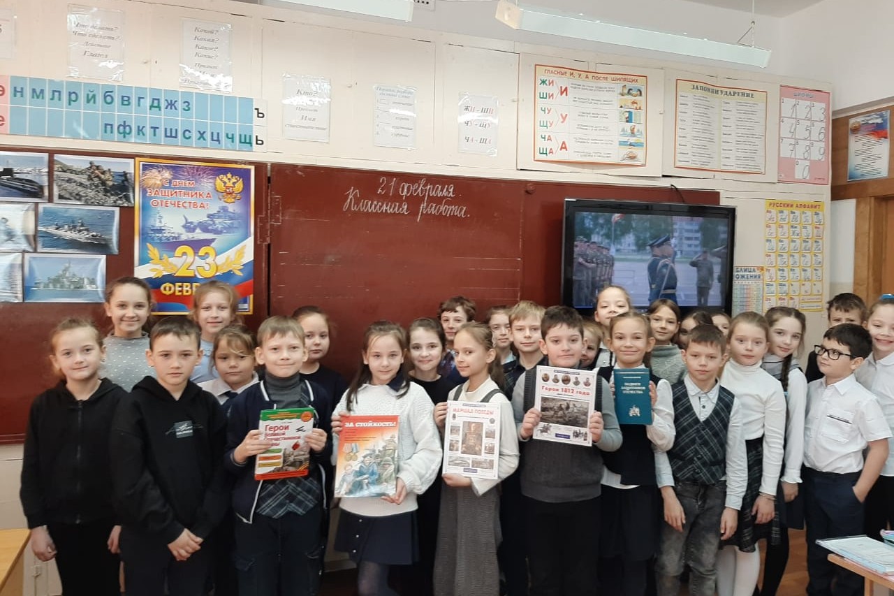 Библиотекарь библиотеки № 12 провела для второклассников СОШ № 50 конкурсную программу «Достойные наследники славных традиций». Она рассказала о сегодняшних буднях защитников России, верности долгу и данной присяге, самоотверженности, чести, доблести, порядочности, самодисциплине. Именно эти традиции чтили и по-настоящему дорожили ими наши отцы и деды, прошагавшие огненными дорогами войны. А затем будущим защитникам была предложена конкурсная программа, в которой ребята смогли проявить силу и выносливость, закалку и находчивость. Юные читатели познакомились с книгами о военном деле и воинской славе России.