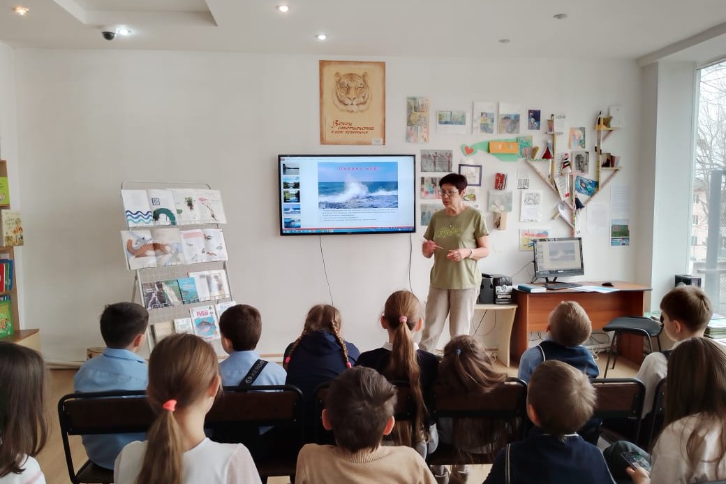 19 марта в этой же библиотеке в рамках проекта «Я – приморец!» организован краеведческий час «По рекам среднего Сихоте-Алиня» для учащихся 3 «А» класса школы № 26. На уроке знакомились с поверхностными водами нашего края, это реки, озера и водопады. Из презентации школьники узнали основные характеристики главной реки края – Уссури, озера Ханки, других рек; познакомились с рыбами, растениями и животными, там обитающими. Слушали поэтичный отрывок из романа Ивана Басаргина «Дикие пчелы», посвященный рекам края. Познакомились с легендами озера Ханка, нанайским мифом о черном драконе. Традиционно пользовались популярностью книжки с выставки, сопровождающей мероприятие.