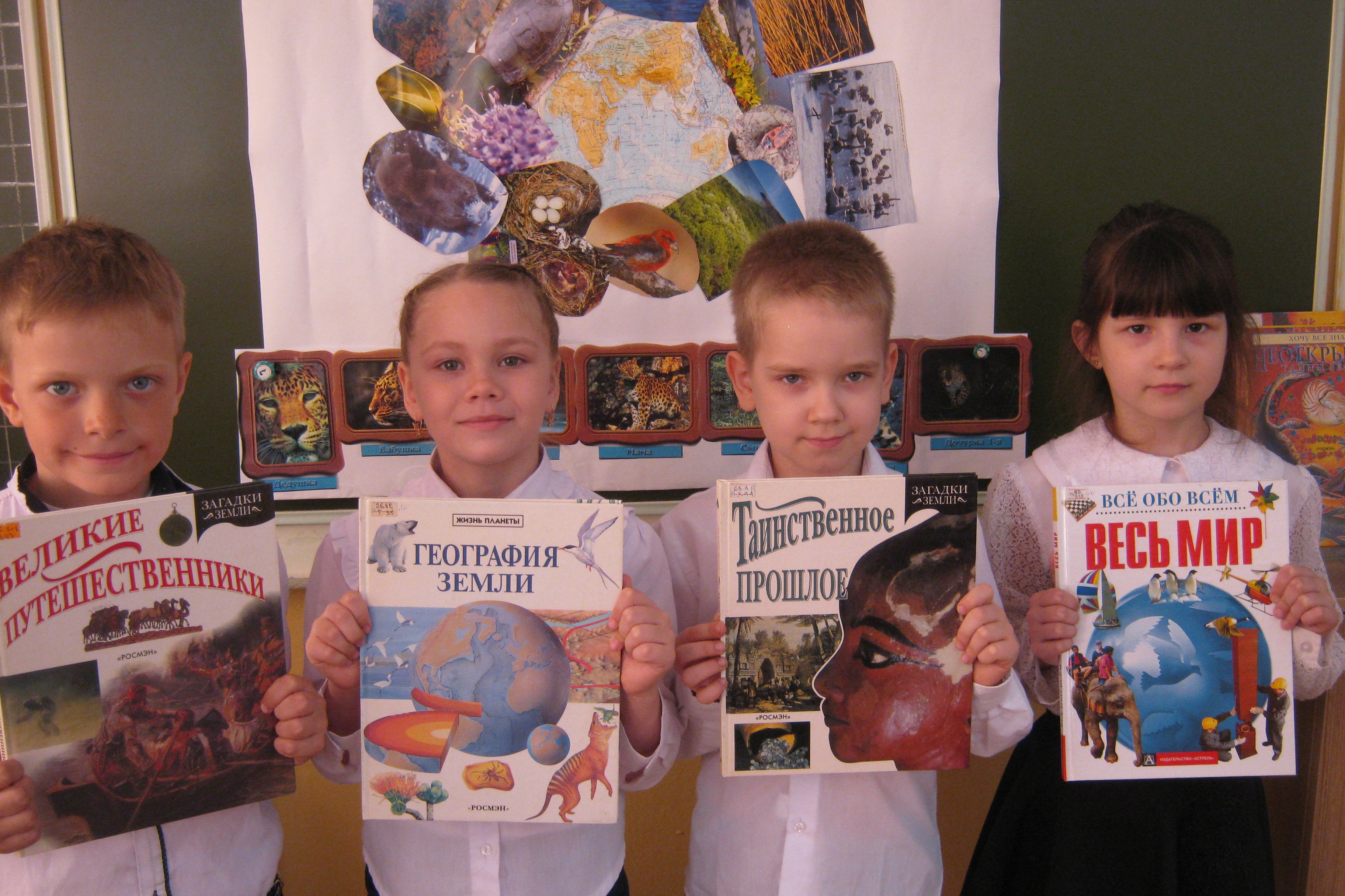 Первоклашки очень любопытный народ. Что, где и почему звучали во время мероприятия постоянно, чтобы ответить на все почему, библиотекарь принесла в класс книги из серии «Загадки Земли». Тут тебе и география, и биология, и путешествия, и открытия и даже природные катастрофы. Книги дети рассматривали с большим любопытством, делились впечатлениями, зачитывались сопровождающиеся рисунки текстом. В результате дети стали рассуждать, как нужно беречь Землю.
