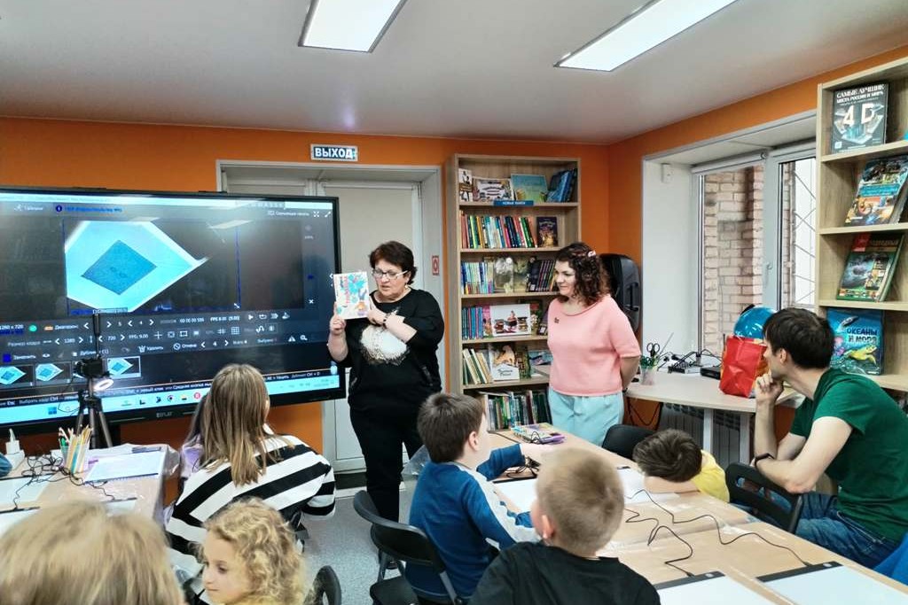 Мультстудия «КНИГОмультик» также стала участником Библиосумерек и семьи, пришедшие вечером в библиотеку на Заре приняли участие в мастер-классе на световых планшетах от Татьяны Волковой, создателя и руководителя Приморской студии детской анимации «АНИМАГИЯ». В ходе работы площадки гости на основе прочитанных произведений создавали мультибусы «Читаем и рисуем вместе».