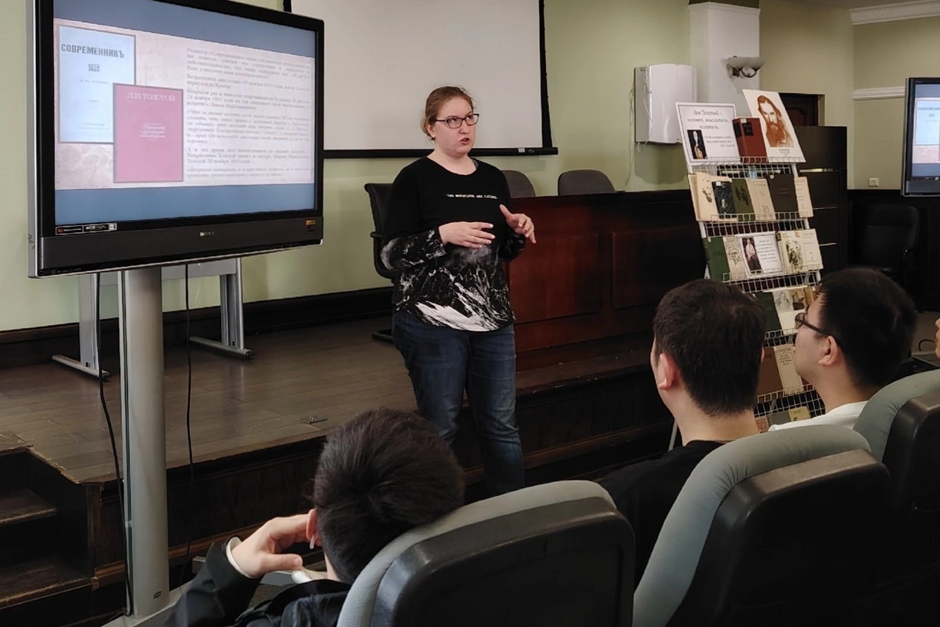 В середине апреля в рамках проекта «Свет Ясной Поляны» при сотрудничестве с проектом «Толстой и мир» кафедры РКИ ВИ-ШРМИ ДВФУ в Научную библиотеку ДВФУ на Алеутской 65б была приглашена библиотека № 21, чтобы провести очередной лекторий, посвященный жизни и творчеству Льва Толстого. В этот раз лекторий был о взаимодействии Толстого с другими писателями, знакомыми многим: Н.А. Некрасовым, И.С. Тургеневым, А.А. Фетом, Ф.М. Достоевским, А.П. Чехов и Максимом Горьким.