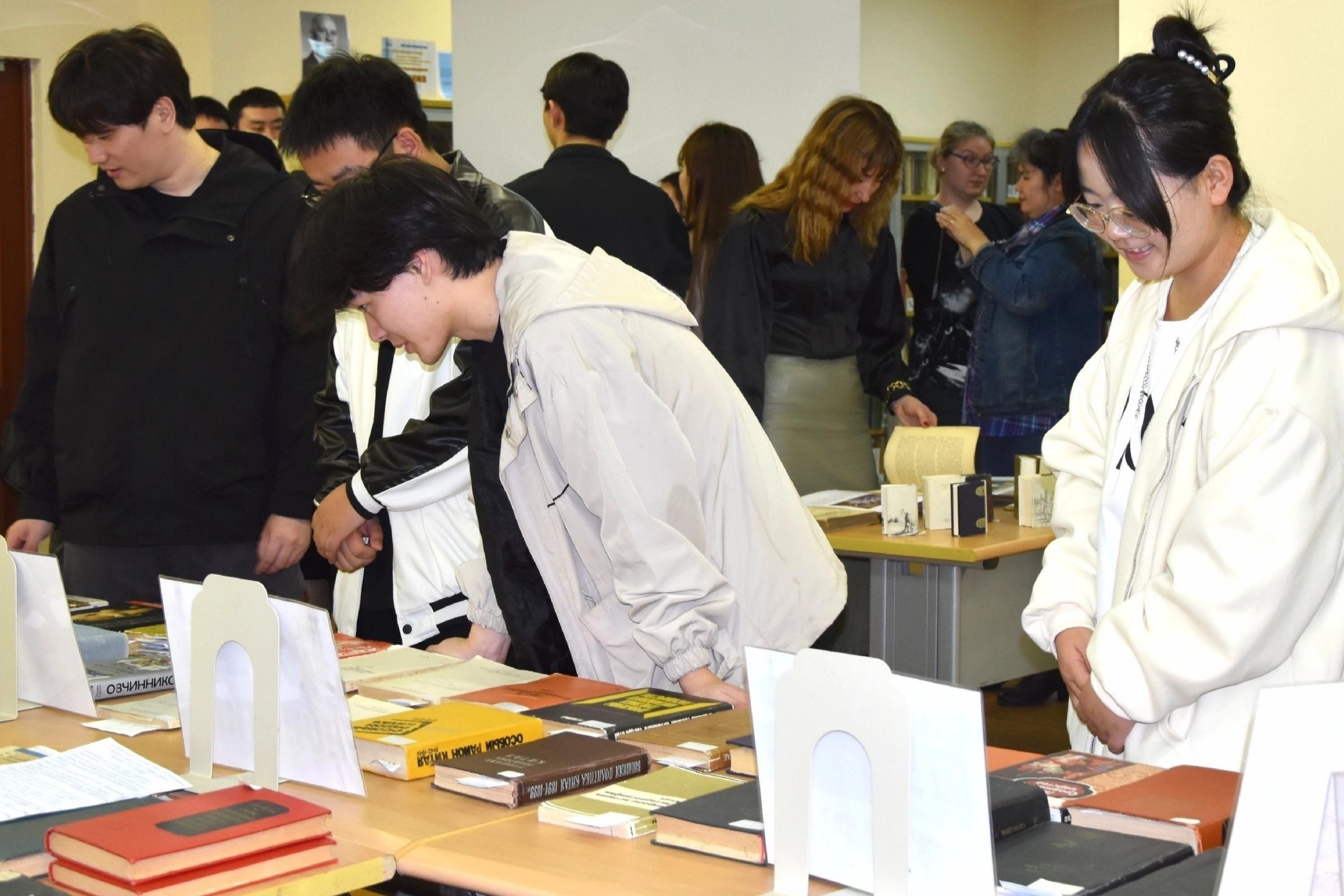 После лектория студенты и спикер отправились в читальный зал редких изданий, где заведующая сектором научных исследований Научной библиотеки ДВФУ Шамина Наталья Владимировна провела интересную экскурсию, рассказав о многих потрясающих редких книгах фонда. Среди прочих, в фонде имеются и экземпляры журнала «Современник» XIX века, два тома «Посмертныя художественныя произведения Льва Николаевича Толстого» издательства Александры Львовны Толстой и многие другие интереснейшие книги.