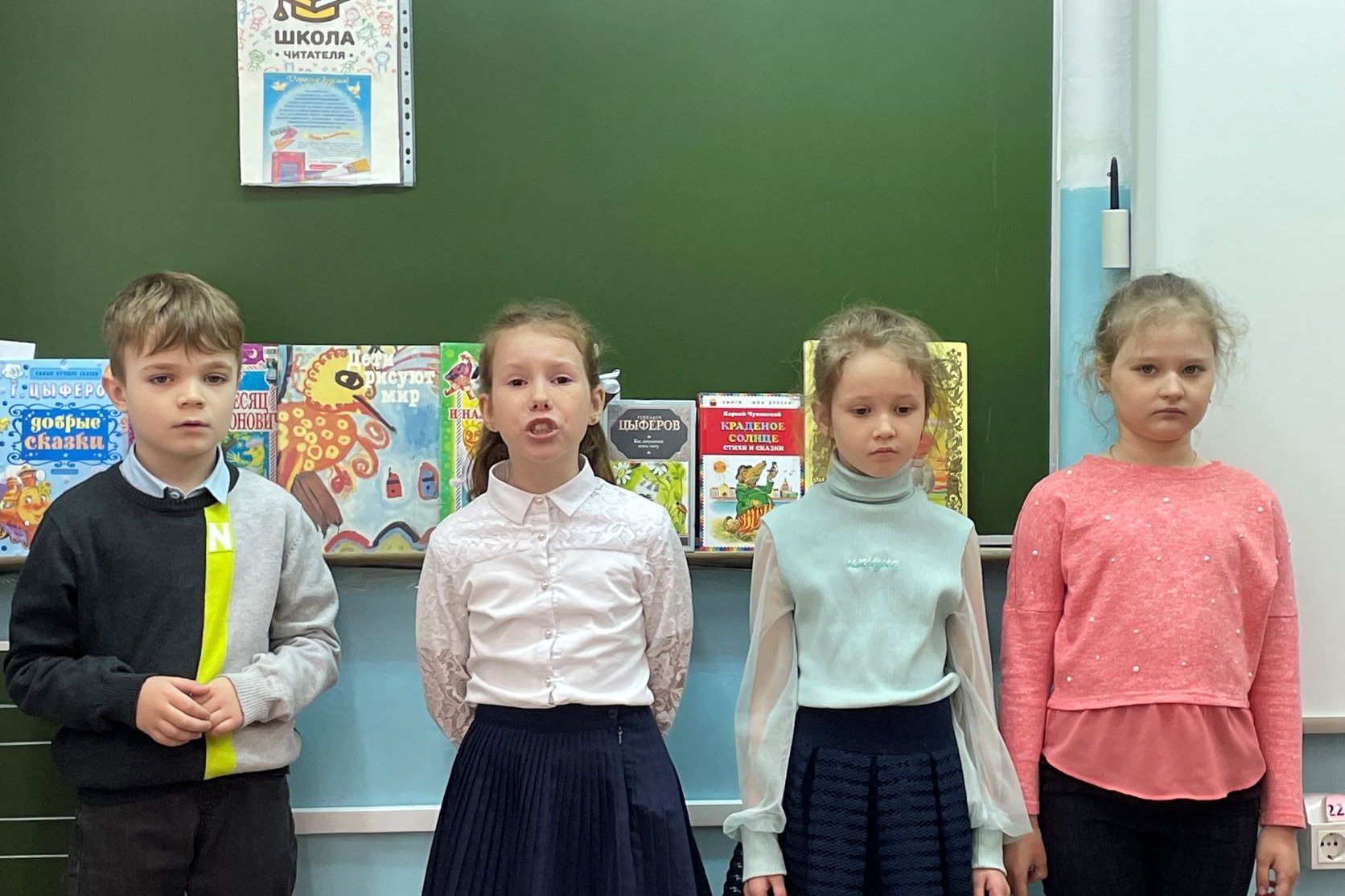 «Как хорошо уметь читать!» — таковы были темы последних уроков чтения. В ходе занятий дети учились выразительности чтения, сопровождали чтение игровыми действиями. Слушая стихи, сказки и рассказы, дети узнавали и запоминали новые слова, содержание произведений, а картинки-иллюстрации помогали полнее воспринимать текст произведения.