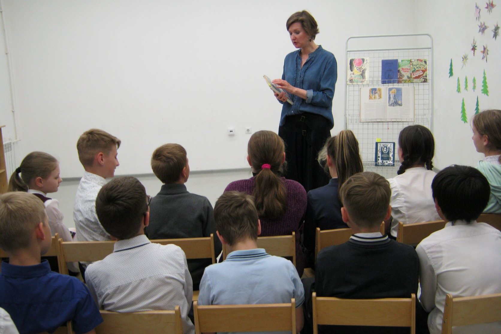 4-й «А» класс в библиотеке №8 за минувший год то делал елку из раскрашенных фрагментов ватмана, то обсуждал кочевую жизнь родителей писательницы Васентины Осеевой, то сравнивал прозу натуралистов Пришвина и Паустовского. Константин Паустовский – писатель – юбиляр, 31 мая – 130 лет со дня его рождения, ему и была посвящена майская, финальная встреча с четвероклассниками в библиотеке. Школьники узнали, что за скучной синей обложкой и скучным названием «Далекие годы» может скрываться описание таких шалостей гимназистов Киевской 1-й гимназии, что нынешним ученикам и не снились. Например, приветствуя титулованного гостя гимназии, вместо «живио» кричать «жулье» и «держи его». В конце занятия 4-й «А» посмотрел анимационный фильм Светланы Филипповой «Митина любовь» по рассказу Бориса Шергина. «Митина любовь» — это конечно русский Север, Архангельск, Соломбала, мглистый морской ветер, ничего общего с сердечно любимым Паустовским солнечным Крещатиком и его цветущими каштанами. Но лошади, трактиры, повозки, вывески, кусачие собаки и первая любовь, все это было в начале двадцатого века и у молодежи Архангельска и Киева и Санкт-Петербурга.