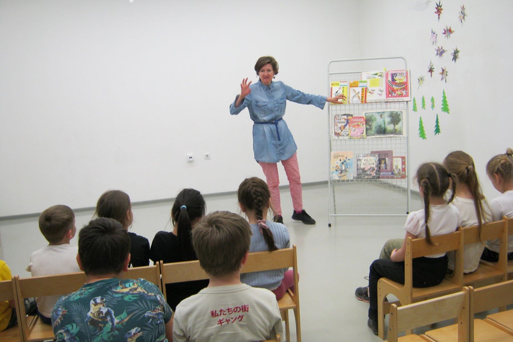 18 мая в библиотеке №8 прошли заключительные занятия в этом учебном году для 2-го «Г» и 4-го «А» класса СОШ №35. Второклассники в течении всего учебного года приходили в библиотеку знакомиться с творчеством художников-иллюстраторов детских книг. Конечно, всех мастеров охватить было невозможно и жаль, что школьникам может быть и не придется никогда открыть для себя самостоятельно Виктора Пивоварова, Михаила Майофиса, Мориса Сендака, Ирину Нахову, Лидию Шульгину. Даже о талантливейшем Геннадии Калиновском было упомянуто вскользь, только и было, что второклашки посмотрели на обложки оформленных им книг и отгадали, с чем этот изумительный художник сравнивал свое любимое искусство древней Греции – с запахом фиалок и морским ветром. Зато школьники «погуляли» по центру Санкт-Петербурга, отыскивая достопримечательности на плане, оставленном для детей Борисом Калаушиным в «Мурзилке». Этот ленинградский художник, знаток русского авангарда, очень любим в библиотеке №8. Его энергичный Топтыгин, путешествовавший по фотоколлажам на выставке «Джангинариум», сразу привлекал к себе внимание детей. Энергия, движение, бег, легкость — так можно описать манеру Калаушина. Параллельно с 2-м «Г» «Школу читателя. Иллюстраторы» посещали воспитанники детского развивающего центра «Цветные ладошки». Для детворы из «Цветных ладошек» знакомство с книжной иллюстрацией продолжится летом в рамках «Незнакомцев с полки».