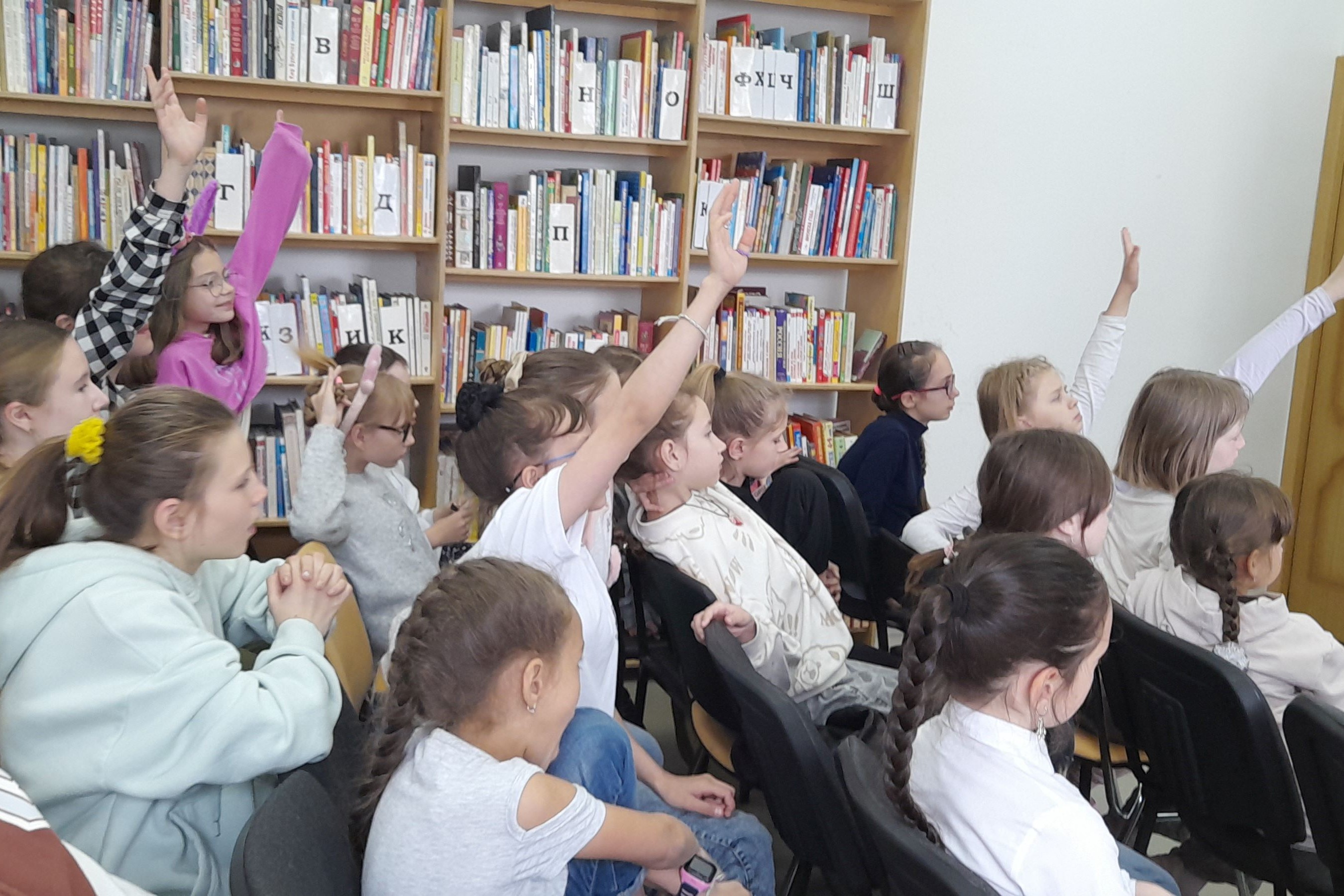 В квадрате «Сказки дедушки Корнея» используя лото, школьники читали известные отрывки из сказок К.И. Чуковского и отгадывали из какой они сказки. В квадрате «Золотой ключик, или…» ребятам было предложено прочитать фрагмент по ролям. И они прекрасно справились с заданием. В квадрате «Чей это памятник?» игроки узнавали литературных героев и вспоминали из какой они сказки, находя книги на полке. Заканчивая встречу все вместе спели песню из кинофильма «Приключения Буратино».