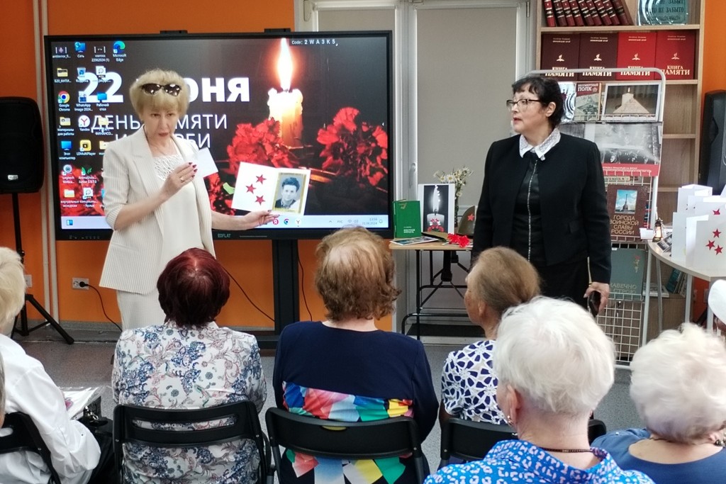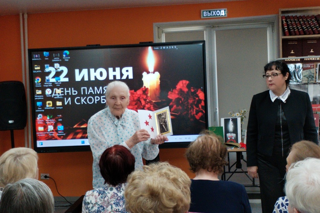 21 июня в библиотеке № 20, которая является региональным организатором Всероссийского показа «Перерыв на кино» #перерывнакино собрались ветераны-педагоги, дети войны, чтобы посмотреть, вспомнить, поговорить судьбе тех, кто воевал, кто работал в тылу, кто ждал, кто о детстве своем забыл в тот самый первый день войны. Каждому было, что сказать после просмотра фильмов программы фестиваля. Работы юных режиссеров невозможно смотреть без слез. Из фотографий родных и близких была создана «Аллея памяти сердца», члены клуба поделились своими воспоминаниями о родственниках, участниках Великой Отечественной войны, кто ценой жизни защищал наше Отечество в пламени войны. Минута молчания, свеча памяти, тёплые воспоминания о судьбах каждого, сопровождали это мероприятие. Наша благодарность и наша память — вечны. Пусть эстафета памяти живёт и передаётся следующим поколениям.