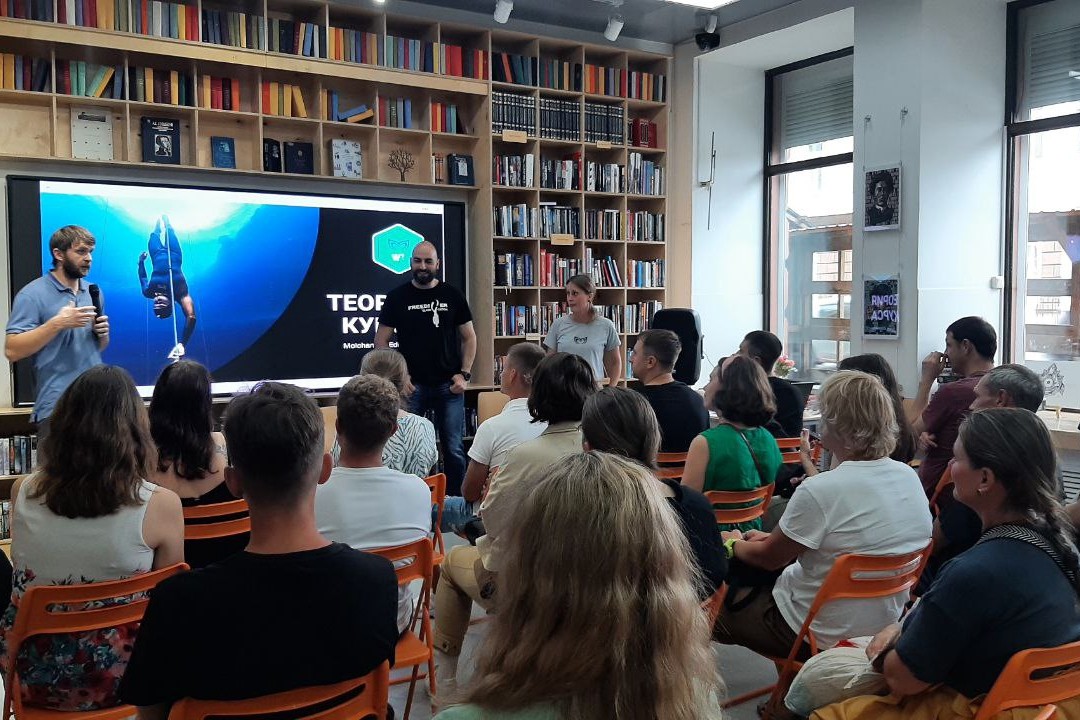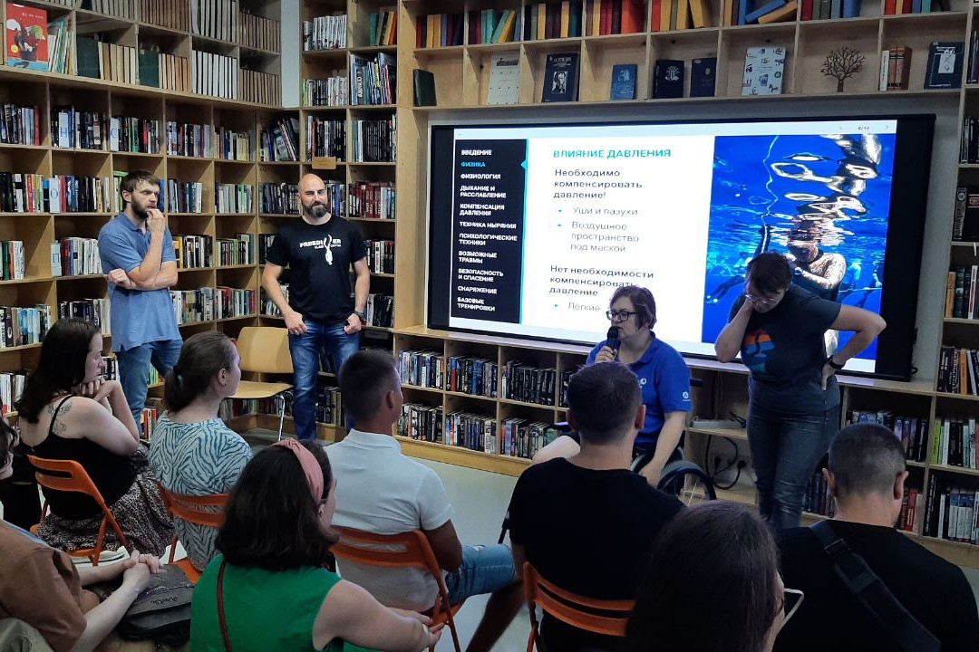 22 июля в библиотеке «БУК» состоялась первая открытая лекция из цикла «Фридайвинг — полное погружение». Тема лекции звучала как «Нырять или наблюдать? Как фридайвинг может изменить твою жизнь».