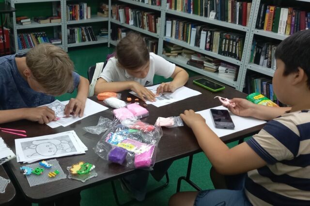 Библиотека № 17 (ул. Иртышская, 42), готовясь к лету, создала комфортную атмосферу для общения и творчества, возможность найти новые хобби и встретиться с друзьями. Этим летом в рамках программы «Лето просвещения 2025» в библиотеке для детей разного возраста организованы такие системные мероприятия, как «Часы интеллектуального досуга», кинотеатр «Звездочка», творческая мастерская «Сундучок». Дети попробовали себя в роли художников-иллюстраторов, или мастеров, создавая что-то новое по мотивам прочитанного.