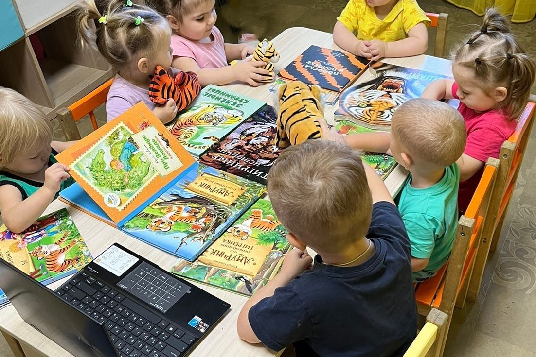В библиотеке № 16 для дошкольников из ДОУ № 68 состоялась познавательная встреча. Дети узнали о среде обитания и повадках тигра, о том, почему у него такой окрас, каких размеров амурский тигр. Обычно говорят «огромный», «большущий», но отмерив с метром размер животного дети очень впечатлялись. Вес тигра в дикой природе составляет в среднем до 200 кг. – это вес домашнего пианино. В игре «Да и Нет» закрепили полученную информацию. Познакомившись с роликами о жизни в зоопарке и на природе размышляли, где лучше жить хищнику. Мнения разделились. Но главный вывод сделали дошкольники, что краснокнижного тигра надо охранять и хорошо кормить.