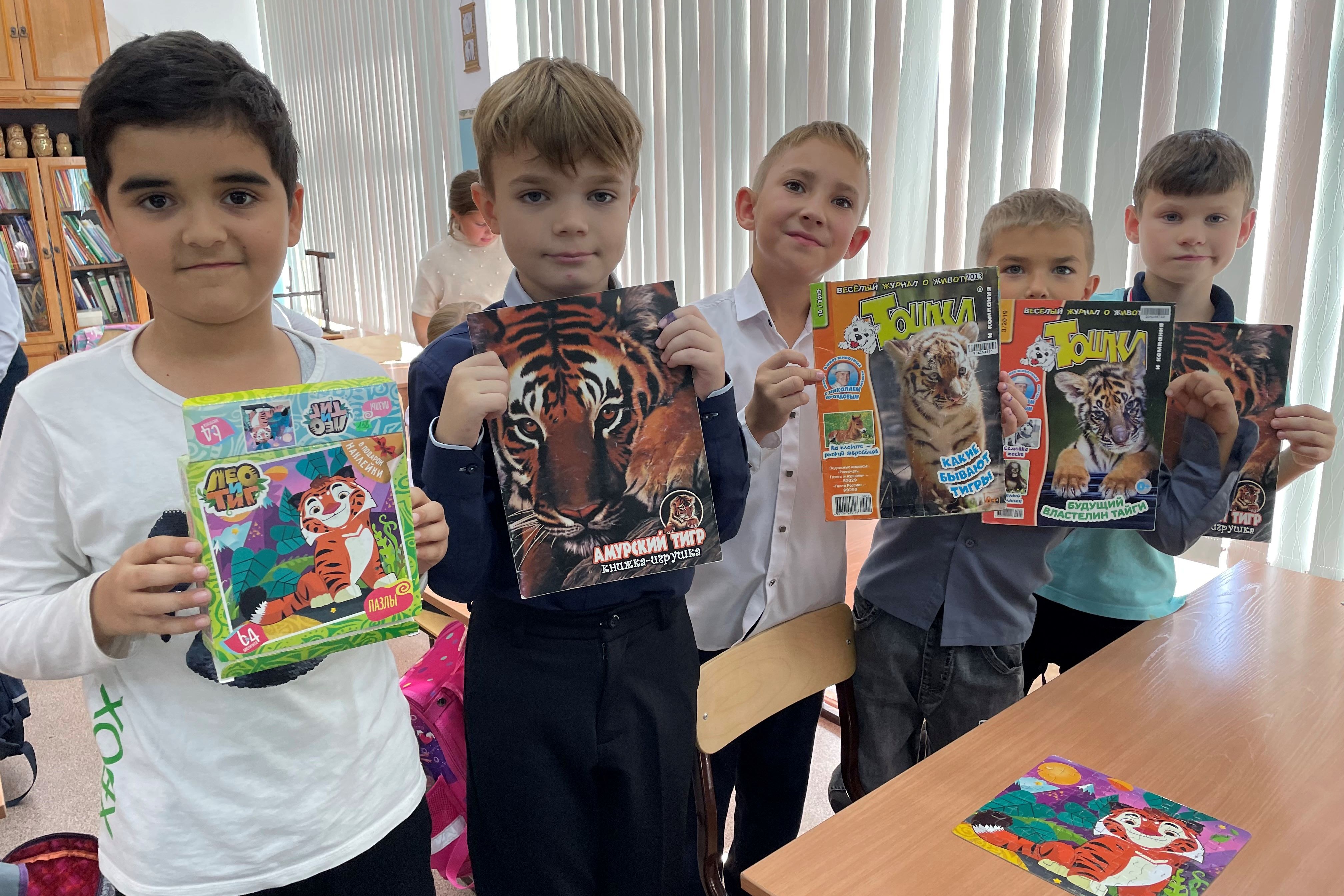 22 сентября сотрудники детской библиотеки № 7 провели с третьеклассниками школы № 59 экологическую игру. Дети узнали, чем уникален этот хищник, умеют ли тигры плавать, зачем полосатый хищник носит бакенбарды, можно ли найти двух тигров с одинаковыми полосками, какой зверь способен противостоять тигру. Увидели наяву картинку настоящей лапы тигра, с восторгом участвовали в квест-игре, отгадывая загадки о тиграх, которые присутствуют в книгах. Потом с выражение читали стихи Василия Солкина, рассказы о приключениях тигренка автора Сергея Георгиева, а другие дети увлеченно соревновались в собирании тигриных пазлов.