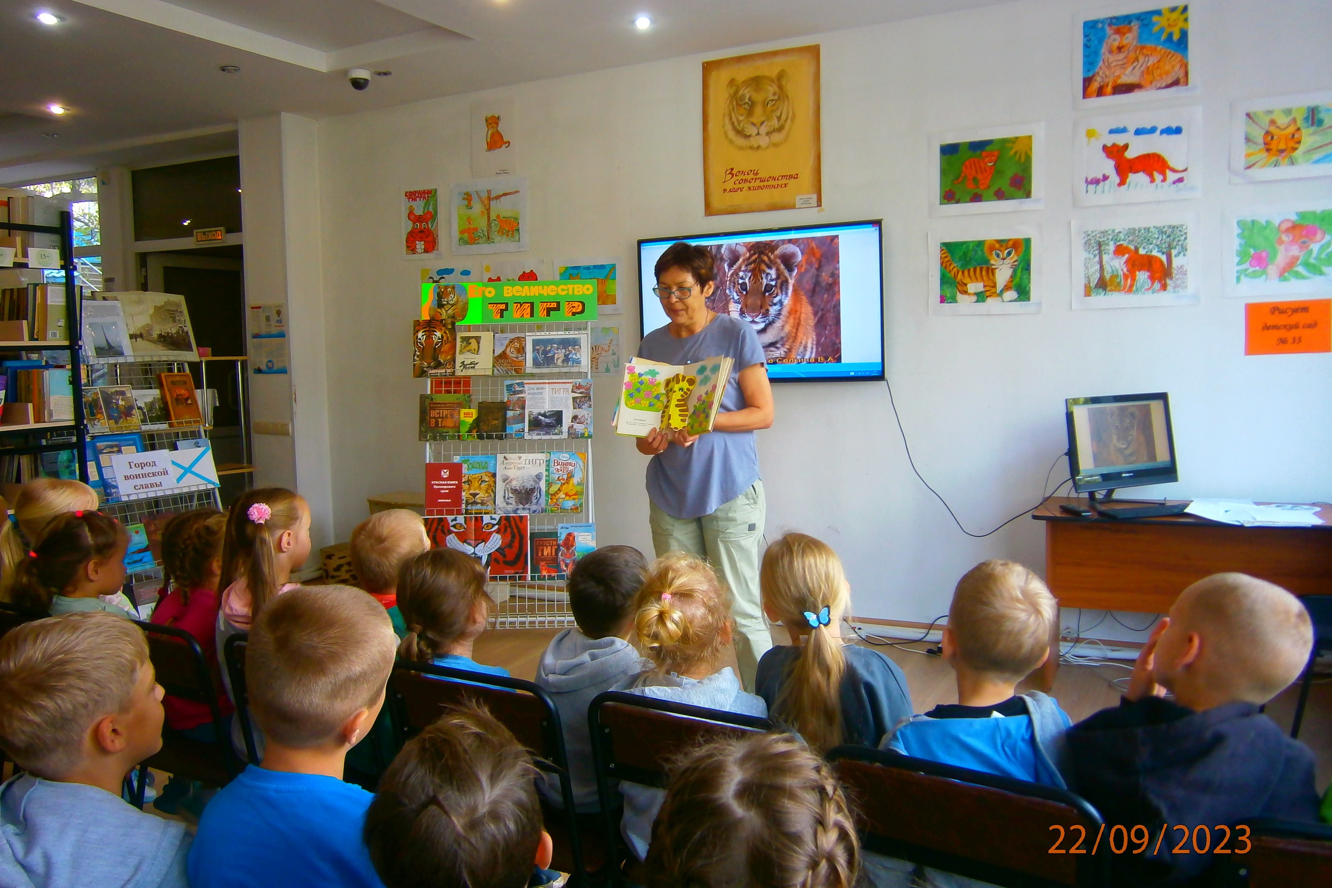 22 сентября библиотека № 15 организовала экологический час для ребят, занимающихся в студии «Дай пять». Ребята узнали, что все народности таежных поселений почитали тигра как божественный дух. Тигр попал в китайский гороскоп, в звездной картине ночного неба созвездие Тигр самое яркое, оно находится в близи Ориона. Попал тигр и в «Красную книгу» России и в «Красную книгу Приморского края». В Хасанском районе был создан заповедник «Земля леопарда», где установлены особые правила нахождения человеком в этом заповеднике. Поставлены фото ловушки, запрещена охота, выкос травы и вырубка леса. В заповеднике дикие звери чувствуют себя защищенными, появилась надежда, что тигр и леопард не исчезнут окончательно из Дальневосточной тайги. Вспомнили тигра Тигрулю из книги «Винни Пух», и Тигра из мультфильма о таежных друзьях. А еще книги С. Георгиева о тигренке Амурчике, который подружился с мальчиком-человеком.