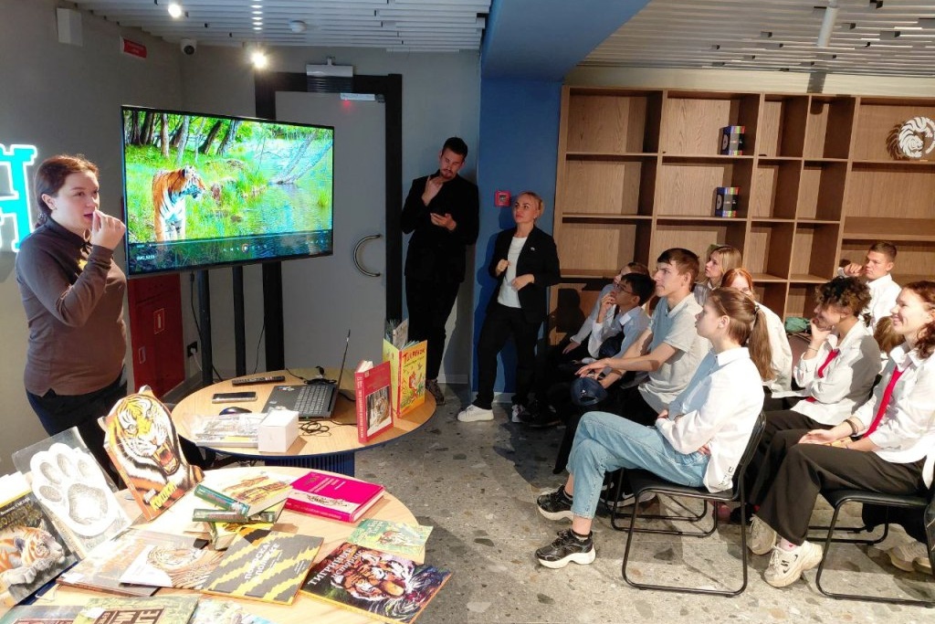 На площадке Национального центра «Россия» (Приморский край) библиотека № 20 провела урок тигроведения «Полосатый хозяин тайги», организованное Штабом общественной поддержки «Живем в приморье» в сотрудничестве с ФГБУ «Земля леопарда». В преддверии Дня тигра, который пройдет 28 сентября, для ребят из коррекционных школ I и VI вида, а также воспитанников Центра семейного досуга и детского развития «Гений» была подготовлена насыщенная программа.