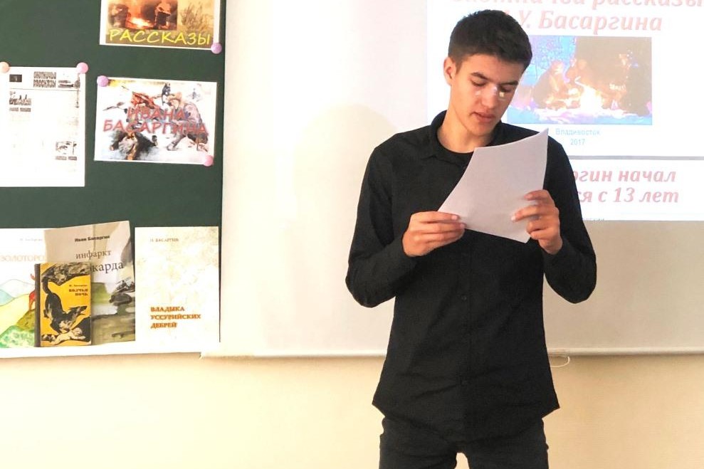 Ребята с интересом прослушали отрывки из указанных рассказов, а затем их вниманию был предложен доклад, в котором рассматривалась особенность языка охотничьих рассказов И.У. Басаргина.