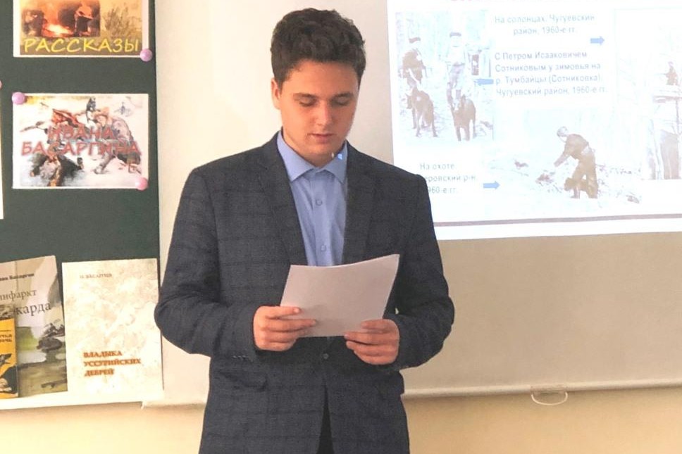Ребята с интересом прослушали отрывки из указанных рассказов, а затем их вниманию был предложен доклад, в котором рассматривалась особенность языка охотничьих рассказов И.У. Басаргина.