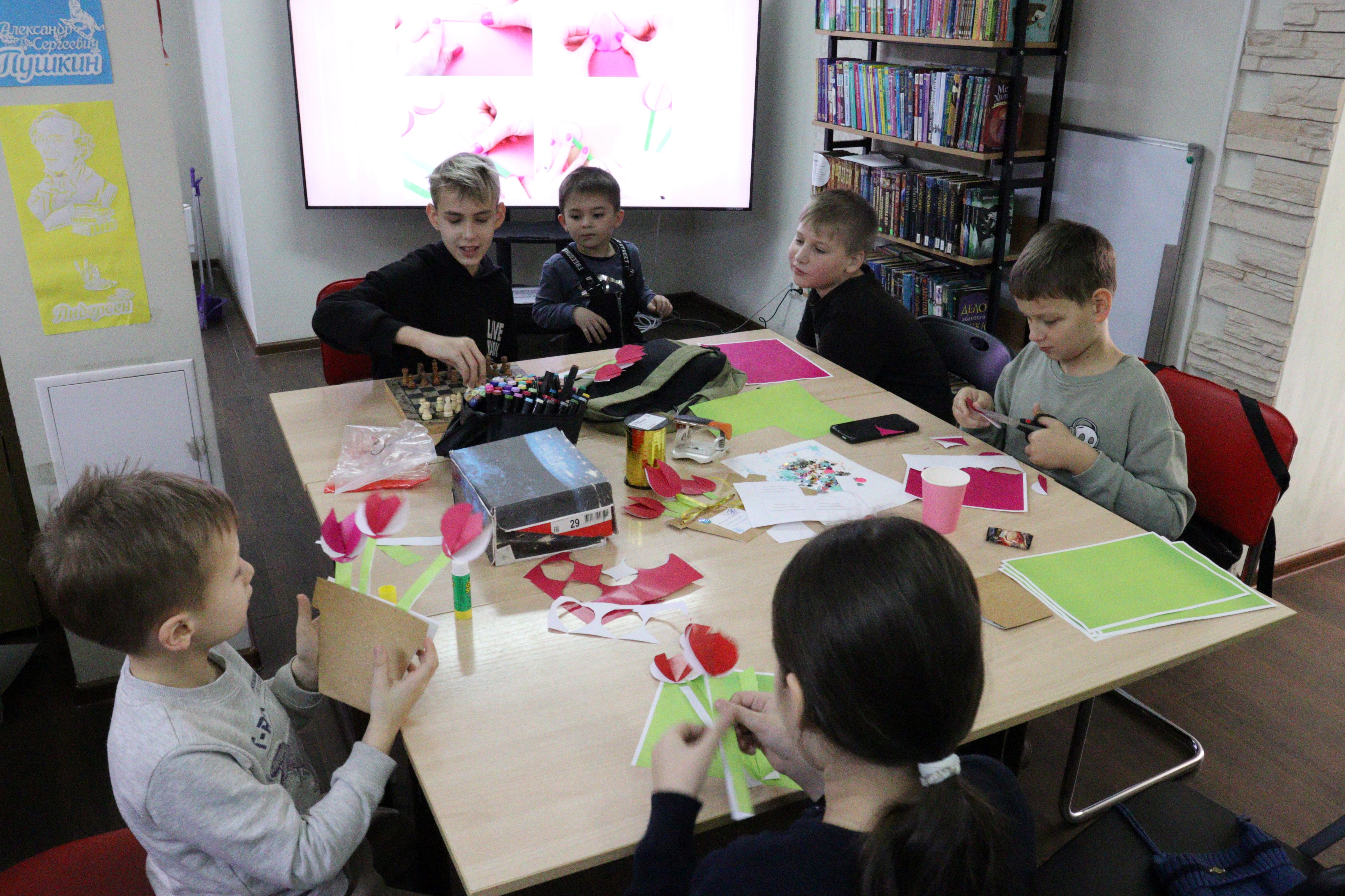 23 ноября в библиотеке №4 прошёл мастер-класс по созданию открытки ко Дню Матери. Ребята с удовольствием участвовали в этом творческом занятии, вырезая из цветной бумаги красивые тюльпаны. Каждый ребёнок сначала выбрал цвет для своего цветка, затем осторожно вырезал его, а после приклеил цветы к бумажным горшкам, чтобы создать эффект цветущего растения. К тюльпанам дети добавляли украшения: бантики и блёстки, чтобы открытка стала ещё более яркой и красочной. Ребята были очень увлечены процессом создания открыток. В конце мастер-класса у всех получились удивительные и оригинальные открытки. Мастер-класс стал для всех участников настоящим праздником.