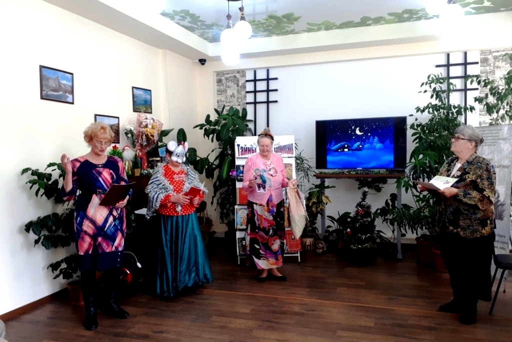 Для гостей библиотеки прозвучали стихи на музыку Пахмутовой, которые прочитали Виталий Дмитриевич Левченко и Кочубейниекова Ирина Владимировна и песни в исполнении Владимира Мороза. Несколько песен исполнила Людмила Ивандикова, Раиса Григорьевна Раенко подготовила праздничные танцы. Затем участники клуба «Исток» представили небольшую предновогоднюю программу в виде театрализованного действия. В ней приняли участие Раиса Григорьевна Цирюльник, Геласимова Евгения Юрьевна, Олейник Римма Николаевна и другие участники клуба.
