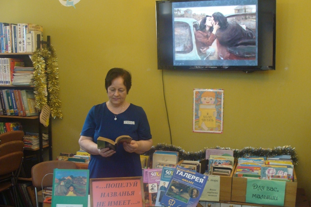 25 декабря библиотека №4 организовала для членов клубного объединения «Общение» литературно-музыкальную композицию, посвященную картинам художников разных времен, увековечившим трепетность и нежность поцелуев. В презентации были представлены картины: Жана-Оноре Фрагонара «Поцелуй украдкой» (конец 1780-х гг.); Юлиуса Кронберга «Ромео и Джульетта на балконе» (1886 год); Эдварда Мунка «Поцелуй» (1897 год); Даниэля Дель Орфана «Красный зонт и поцелуй» и др. Презентацию дополнила выставка «…Поцелуй названья не имеет…», на которой были представлены сборники стихов и репродукции картин по теме. Воспользовавшись выставкой, гости читали стихи С. Есенина, А. Кольцова, Э. Асадова, Ю. Друниной. Картины, поэзия и музыка сделали встречу теплой и подарили хорошее настроение в канун Нового года!