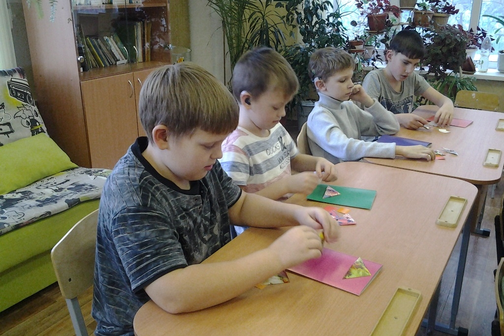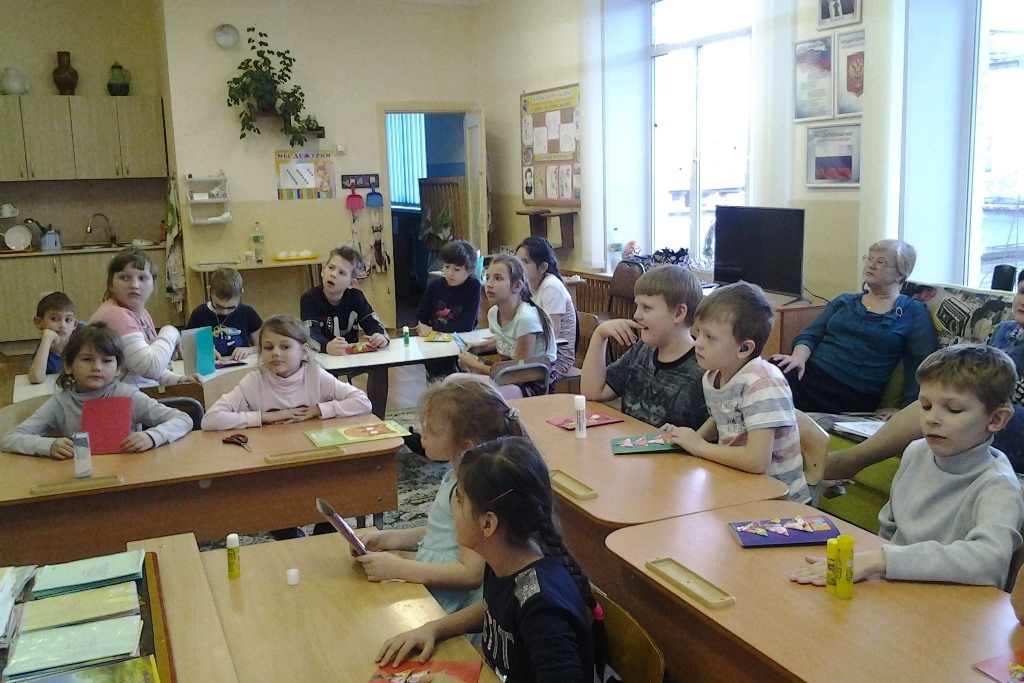 Завершая урок чтения, библиотекари рассказали ребятам, о том, что открытка изготовленная своими руками, подписанная добрыми словами-пожеланиями станет прекрасным и душевным подарком родным, близким, друзьям.