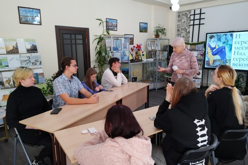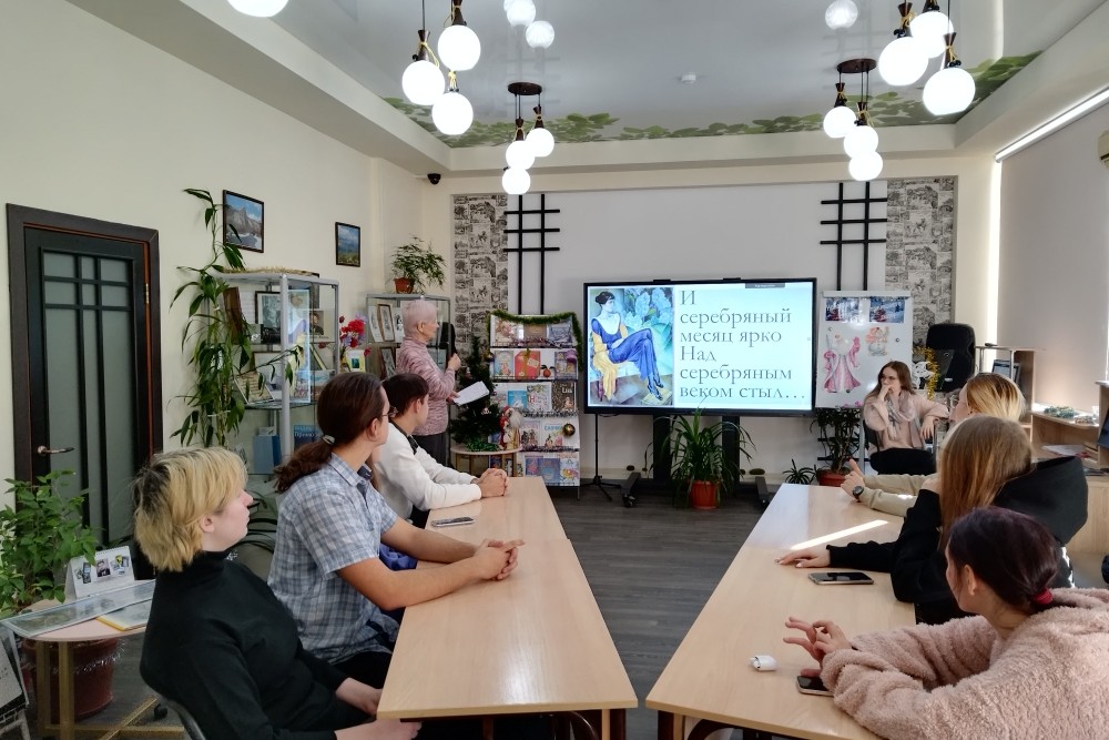 В библиотеке им. И.У. Басаргина прошел литературный час «Серебряный век в воспоминаниях современников» в литературной гостиной «Вектор чтения» для учащихся «Владивостокский гуманитарно-коммерческий колледж Приморского крайпотребсоюза».