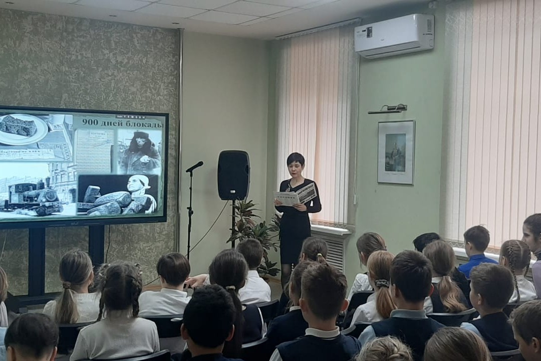 25 января библиотека № 4 организовала для юных читателей громкие чтения «900 дней подвига». Ребята прослушали рассказ Ю. Ивановой «Дорога жизни» о ледяной магистрали, единственной надежде на спасение для жителей блокадного города, рассказы Сергея Алексеева «Зоя», «Буль-буль», «Выходное платье», Валерия Воскобойникова «Первые дни войны. Город блокады», «Максим Емельянович Твердохлеб». В продолжении встречи школьники написали письма-треугольники солдатам, которые сегодня находятся на фронте, а их родители приняли участие в опросе в рамках проекта «Бессмертный книжный полк», выбирая любимую книгу о войне.