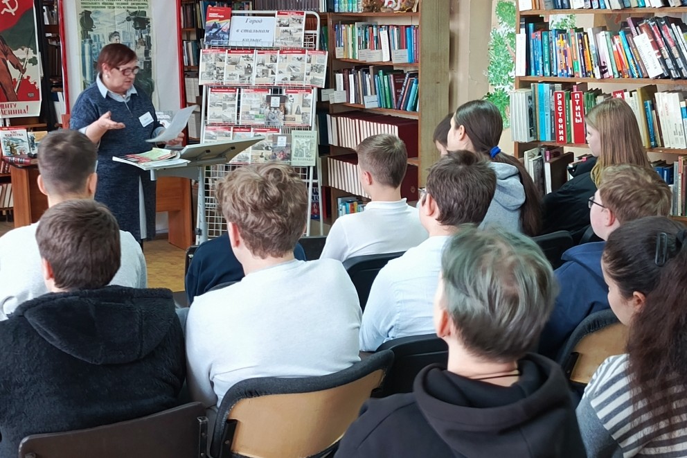 16 января и 22 января сотрудники библиотеки № 14 организовали уроки мужества «Город в стальном кольце» для учеников центра образования «Ступени» (СОШ № 45) и ВВПОД «Юнармия». В ходе мероприятия звучали отрывки произведения Ольги Берггольц, седьмая симфония о блокадном Ленинграде Дмитрия Шостаковича. Большое впечатление на ребят произвел рассказ о норме хлеба блокадников, о том, что значили в то время хлебные карточки. Под звуки метронома присутствующие почтили память воинов и жителей Ленинграда, отстоявших его и не доживших до наших дней, минутой молчания.