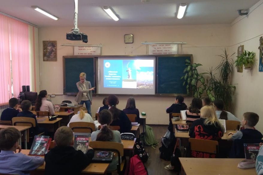 Интерактивную экскурсию на Мамаев курган, организованную библиотекой № 10, совершили ученики 5 «А» и 5 «Б» классов школы № 18 им. В.К. Арсеньева, а также 6,7,8 и 9-х классов школы № 5 (о. Русский) в честь 80-летия победы в Сталинградской битве и в преддверии Дня защитника Отечества. Мамаев курган известен в первую очередь памятником-ансамблем «Героям Сталинградской битвы». Именно основные композиции увидели и услышали о них школьники: композиция-горельеф «Память поколений», Аллея пирамидальных тополей, Площадь Стоявших насмерть, Стены-руины, Площадь Героев, «побывали» в Зале Воинской славы.