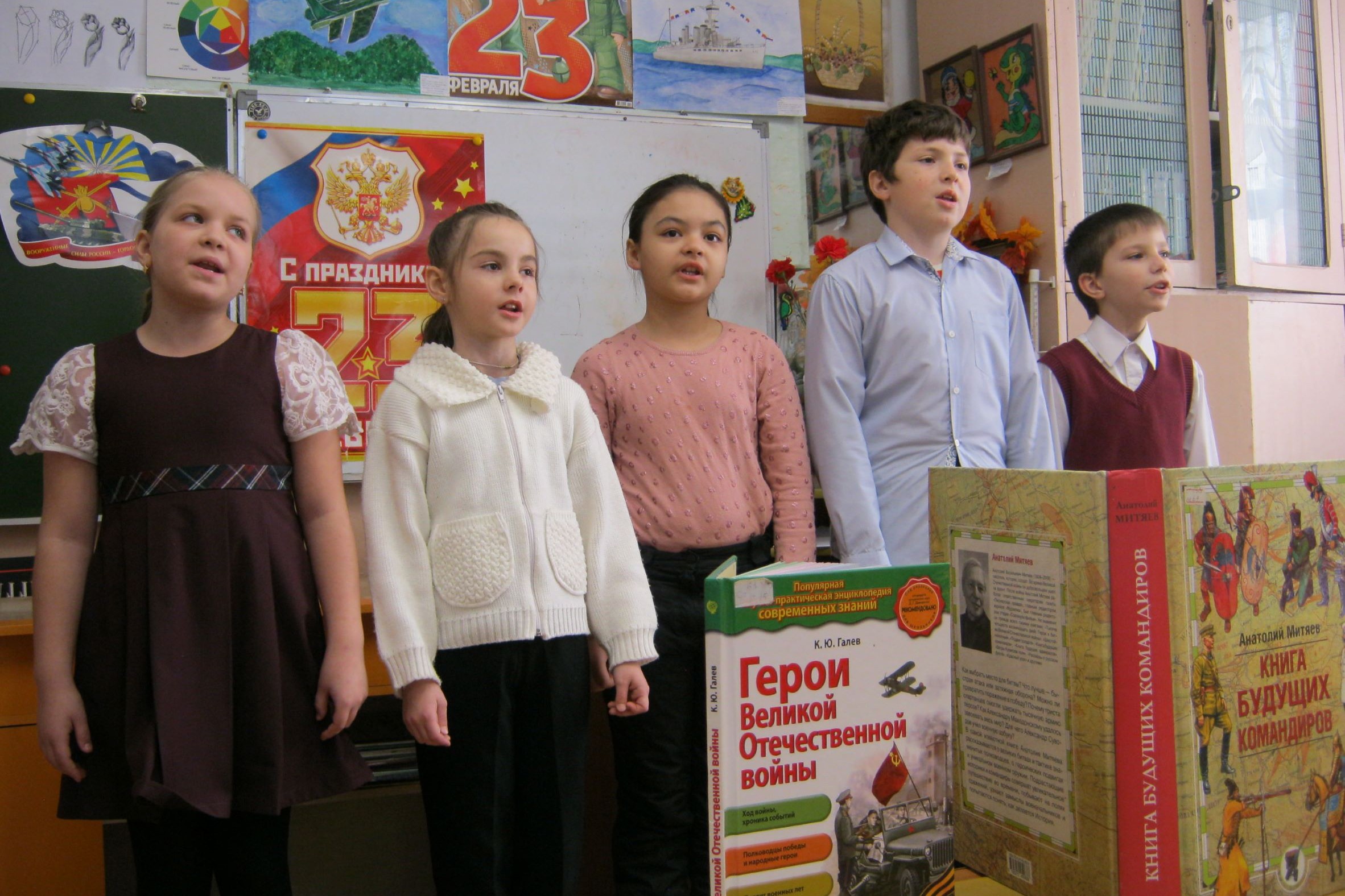 21 февраля в центре развития творчества детства и юношества отмечался День защитника Отечества, к празднованию присоединилась библиотека № 8. Собравшись в классе изостудии, дети отгадывали загадки, читали вслух стихотворения, пела песни. Выставка библиотечных книг, приуроченная к 23 февраля, на время предпраздничного занятия разместилась в изостудии ЦРТДиЮ.