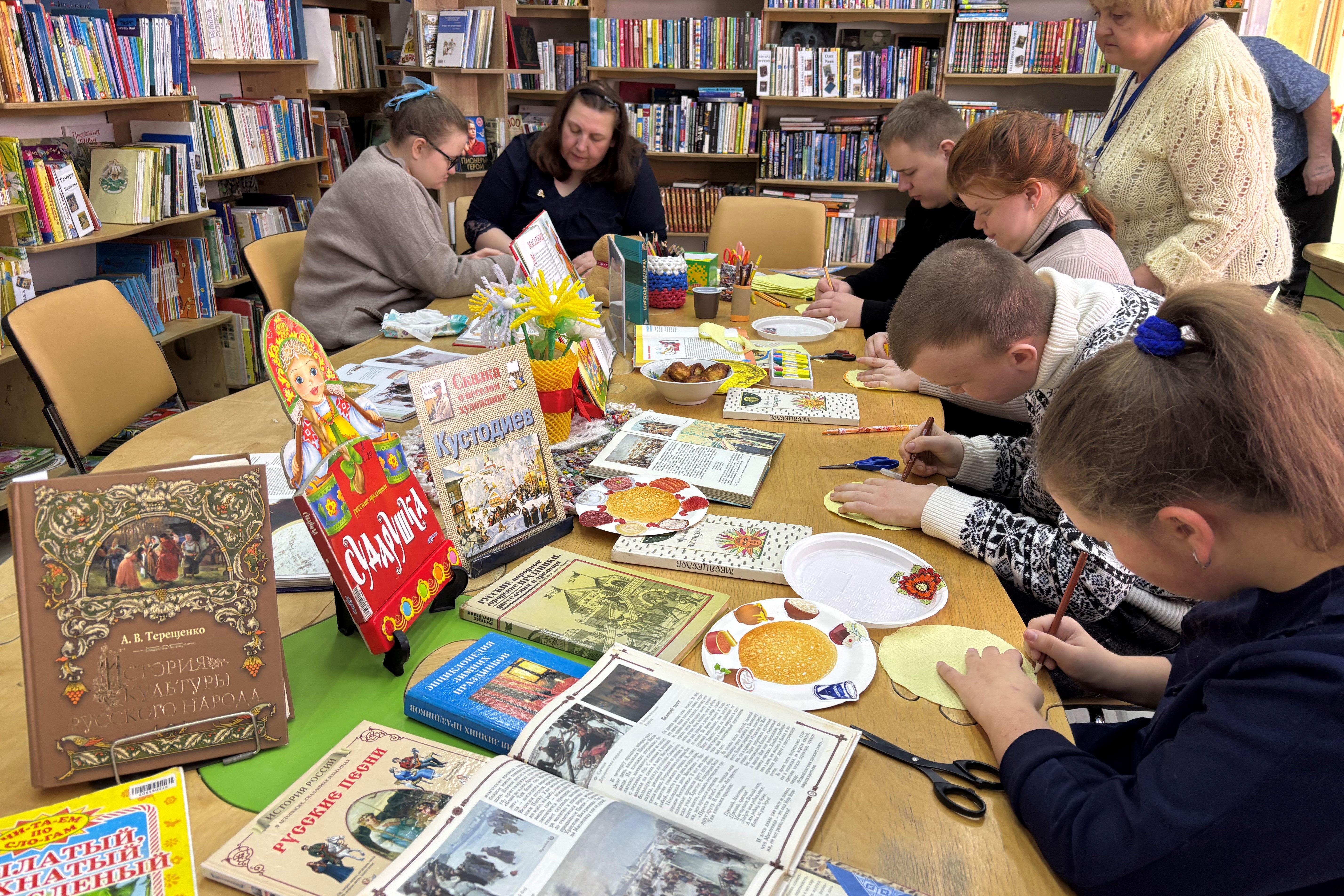 25 февраля в рамках социально-просветительского проекта ВЦБС «Тебя здесь ждут» в детской библиотеке № 7 воспитанники Коррекционной школы встречали в библиотеке Масленицу. Ребята с интересом слушали масленичные истории, познакомились с тряпичной куклой Масленицей, увидели, как когда-то давно праздновали ее на Руси. С удовольствием слушали русские масленичные песни, играли в игры, а юноши даже померились силой, испытав свою удаль молодецкую. В творческой части программы мастерили блин из бумаги – символ солнца, оживающего после зимы.