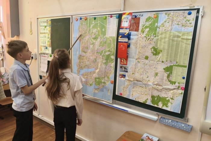 Вместе с библиотекарем школьники «прошлись» по старым и новым кварталам, изучая происхождение знакомых с детства имен. Ребята узнали, что многие улицы получили свои названия благодаря удивительному ландшафту приморской земли (например, улицы Береговая, Садовая, сопка Бурачка). Другие же хранят память о героях войн, защищавших рубежи Родины. Например, площадь Баляева, в районе которой расположена родная школа, улицы Адмирала Юмашева, Адмирала Кузнецова.
